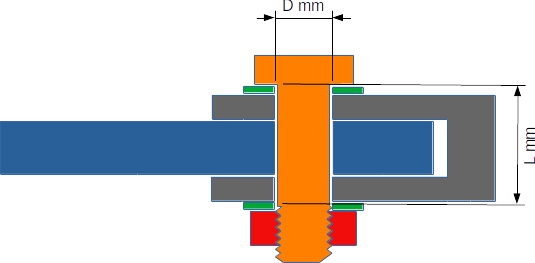 Wichtig ist der Innendurchmesser der Löcher (D) und die Länge des glatten Kerns der Schraube (L).