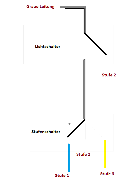 hmm das heißt also, kein Stromfluss = Stufe 2... dann würde ich die grau/weiße Leitung als Zuleitung verwenden.