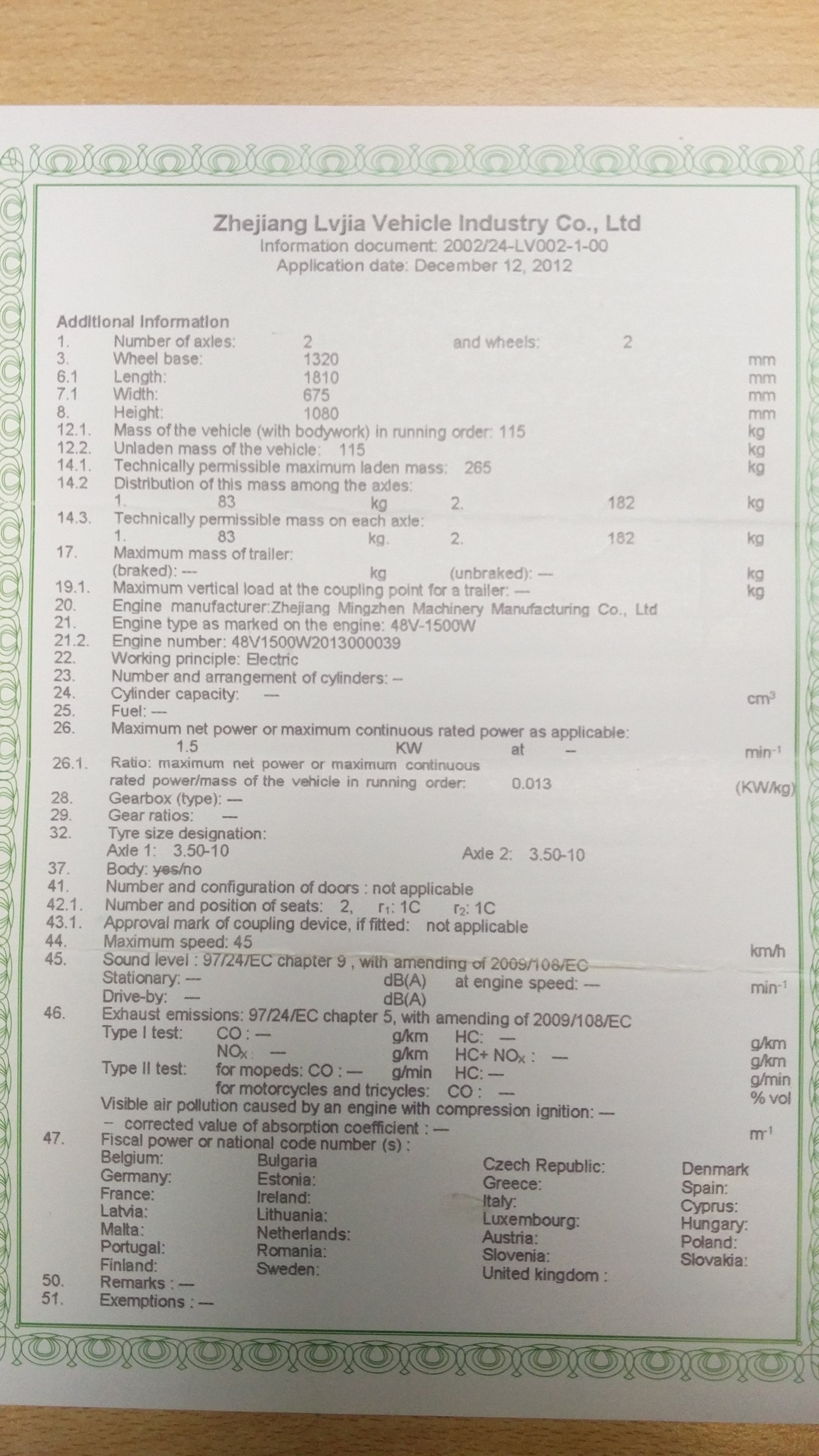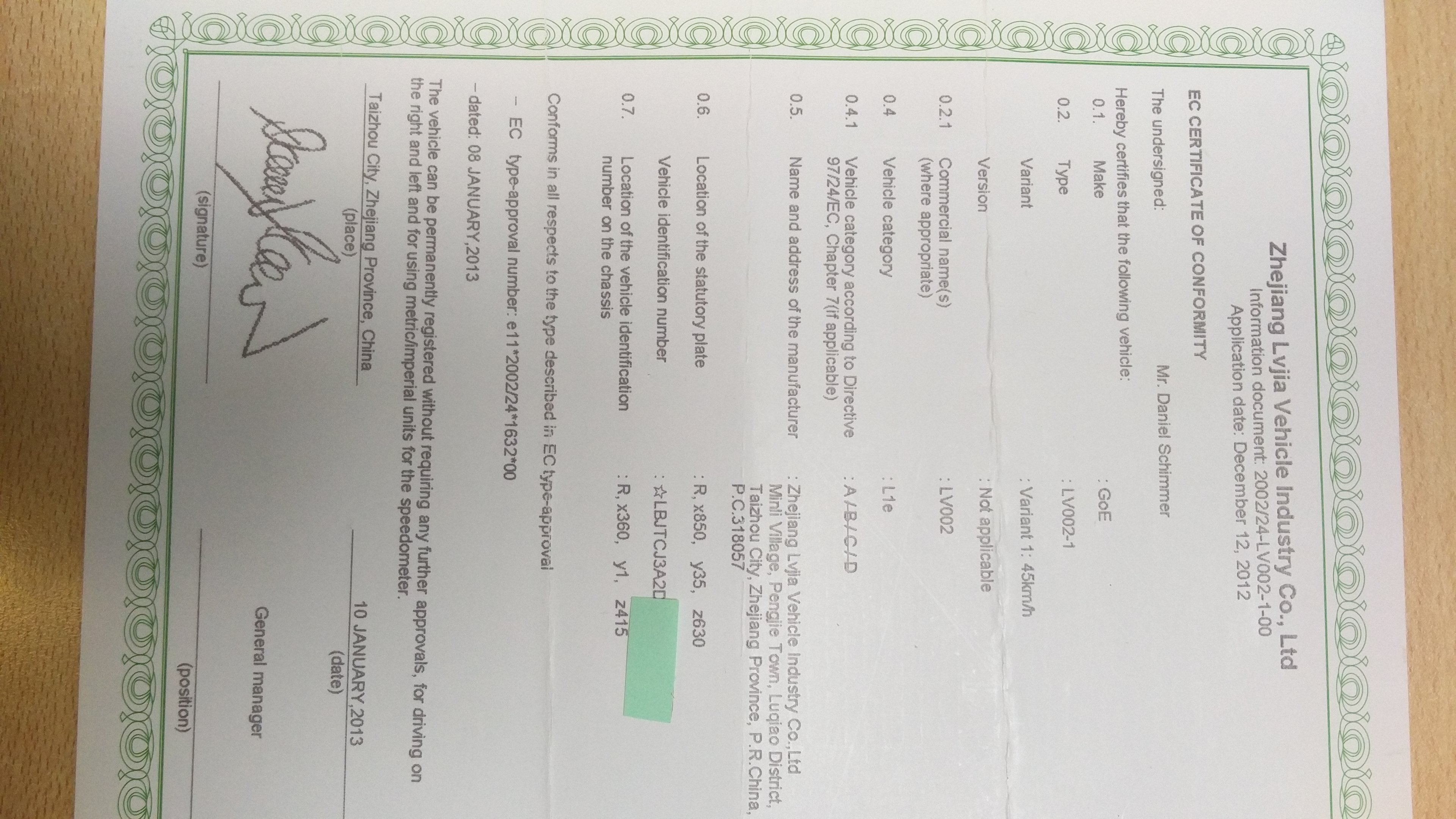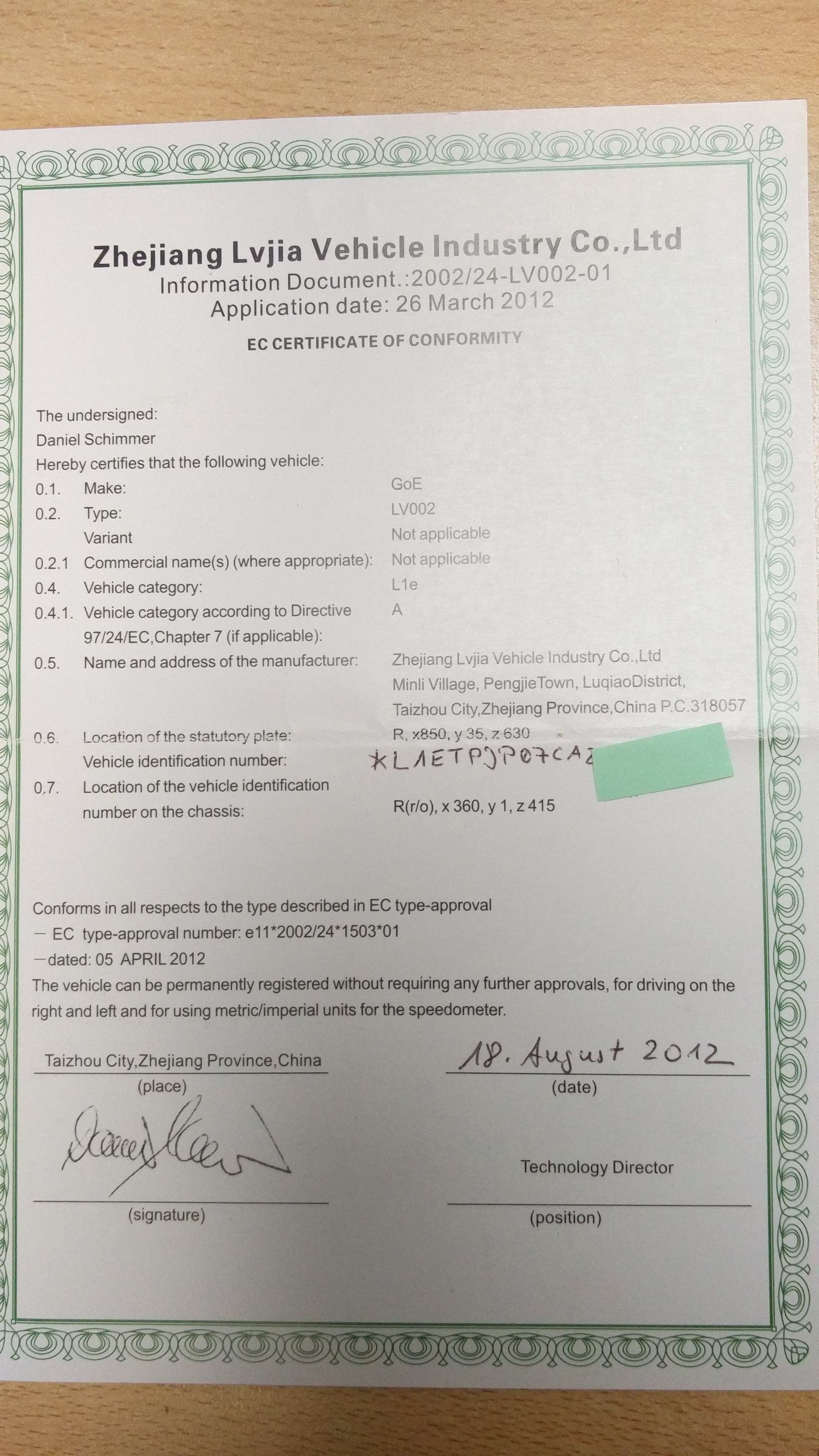 In den Papieren steht nur die Leistung und die Nummer des Motors, wobei ja das Leergewicht sinkt, ich habe zufällig 2 "gleiche" Roller mit Pb und Li, das COC unterscheidet sich grob nur bei der Fin.