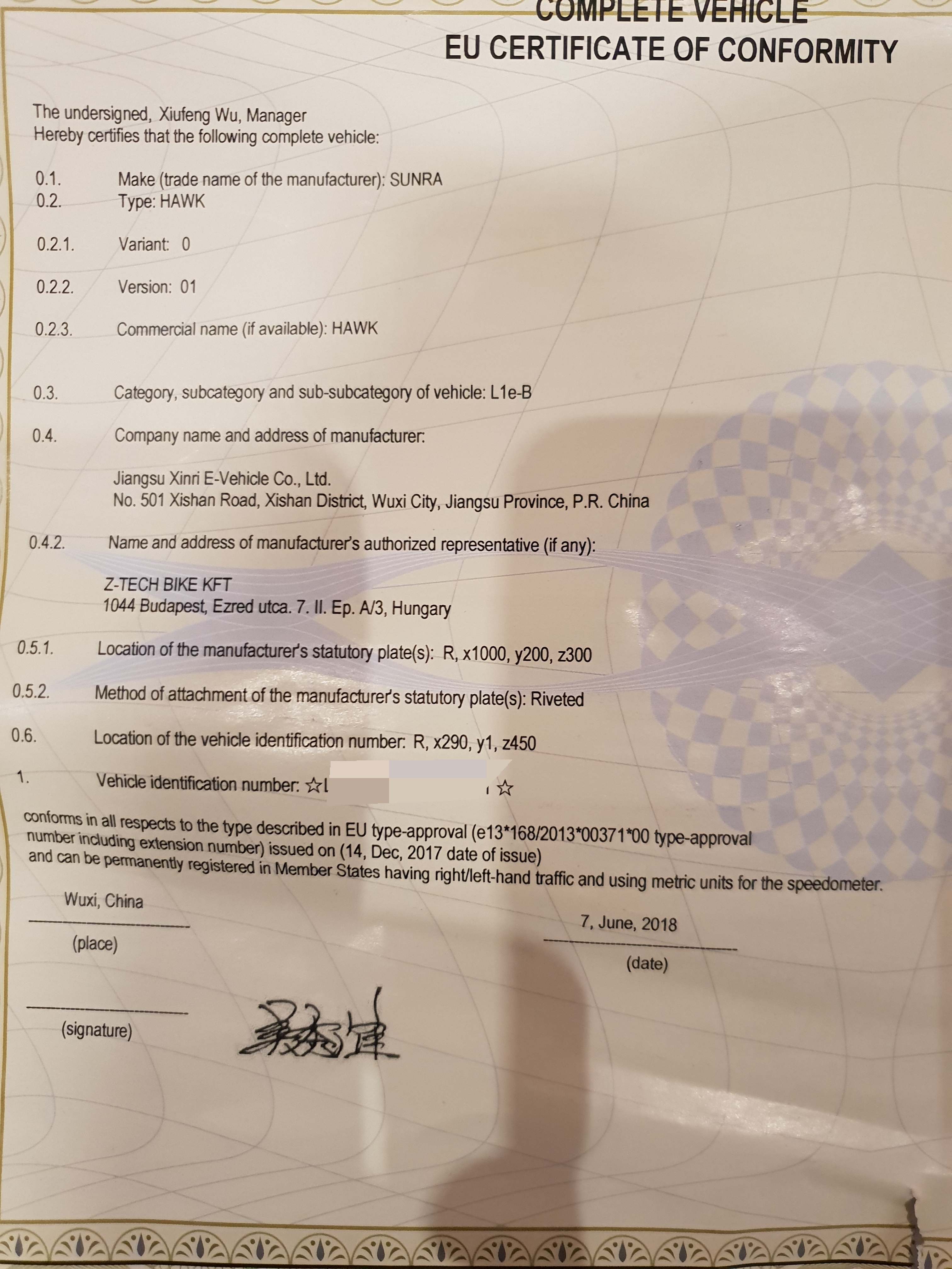 Nur das ich ihn gekauft habe und genau so steht es in den Papieren und das Logo von Xin Ri ist auch auf dem Roller. Ich hätte es ja in die Xin Ri - Sunra- Rubrik geschrieben, wenn es sie gäbe.
