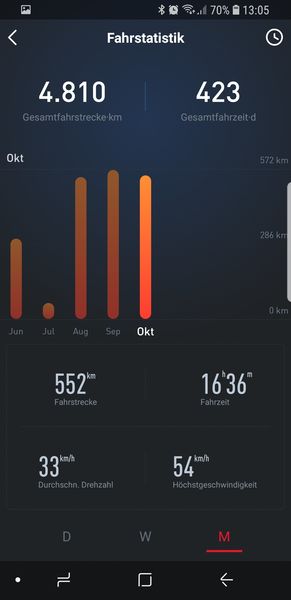 Mein M1 ist offline, daher keine Zyklen und auch keine Durchschnitts Km/h.