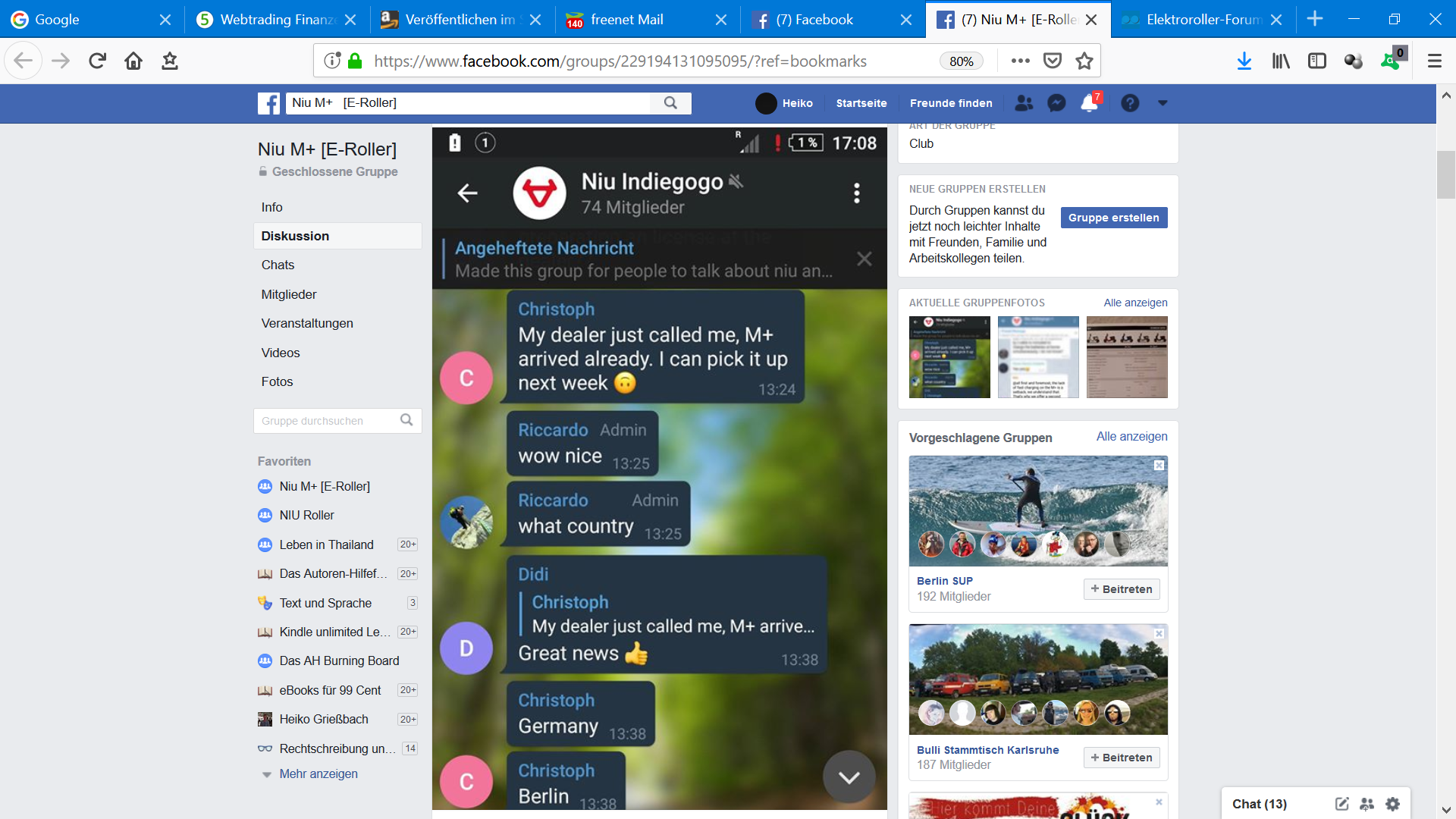 Hallo, ich habe auf Telegramm geschrieben, dass mein M+ da ist und ich es nächste Woche abholen werde.