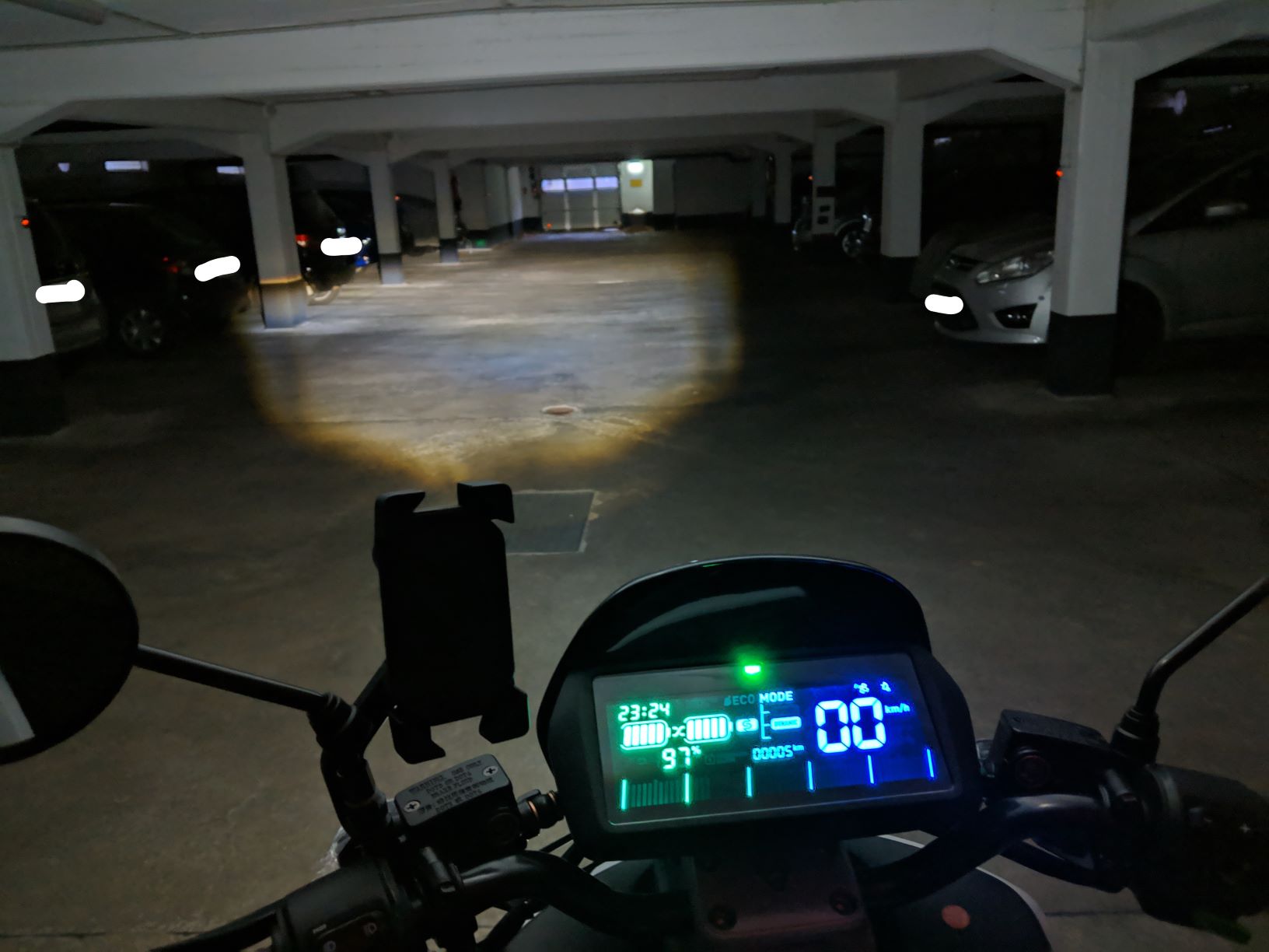 Beschleunigung in der Tiefgarage bis 30km/h sehr gut. Und Bremstest von 30km/h auf 0 auch sehr gut!