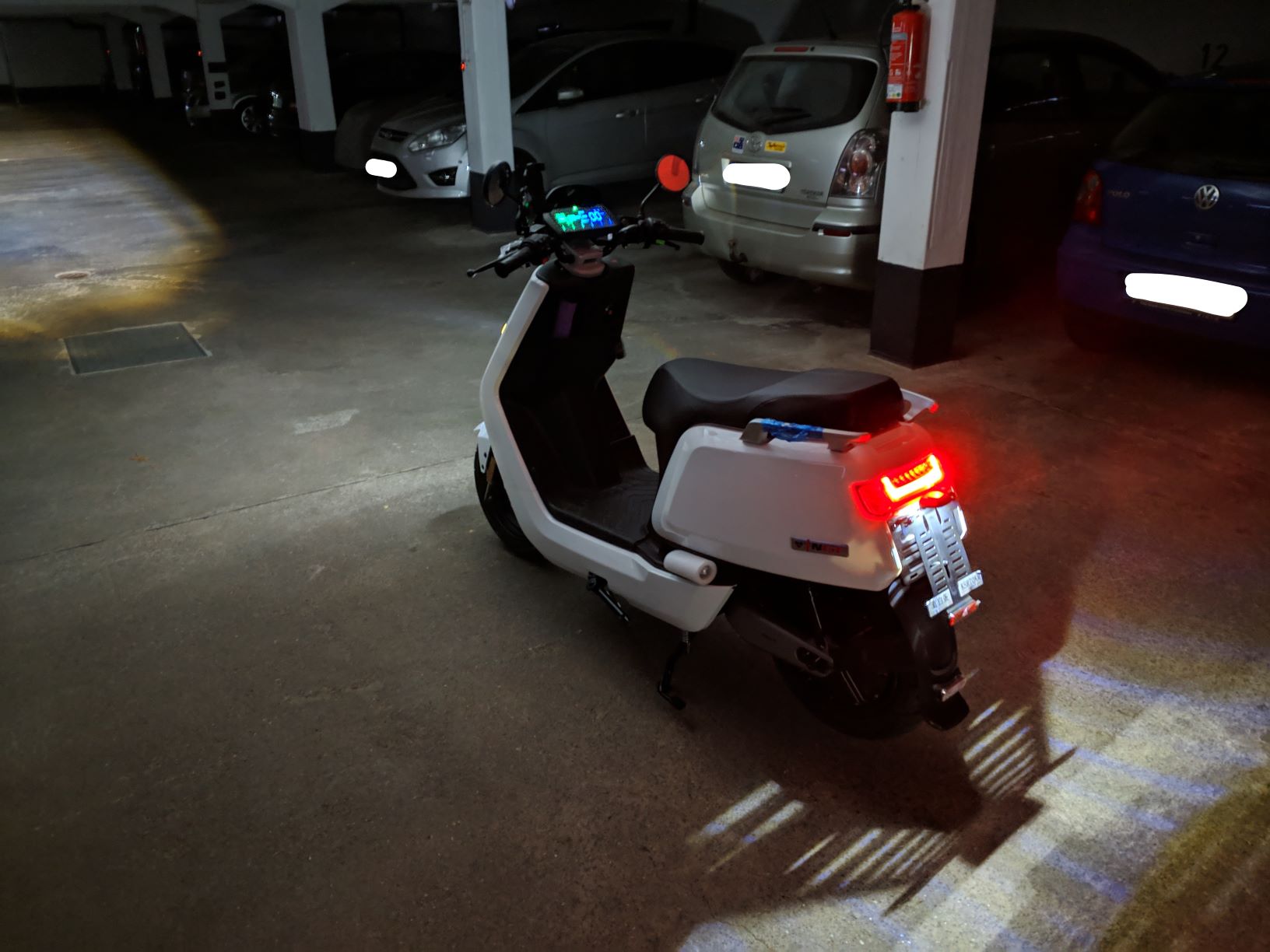 Beschleunigung in der Tiefgarage bis 30km/h sehr gut. Und Bremstest von 30km/h auf 0 auch sehr gut!