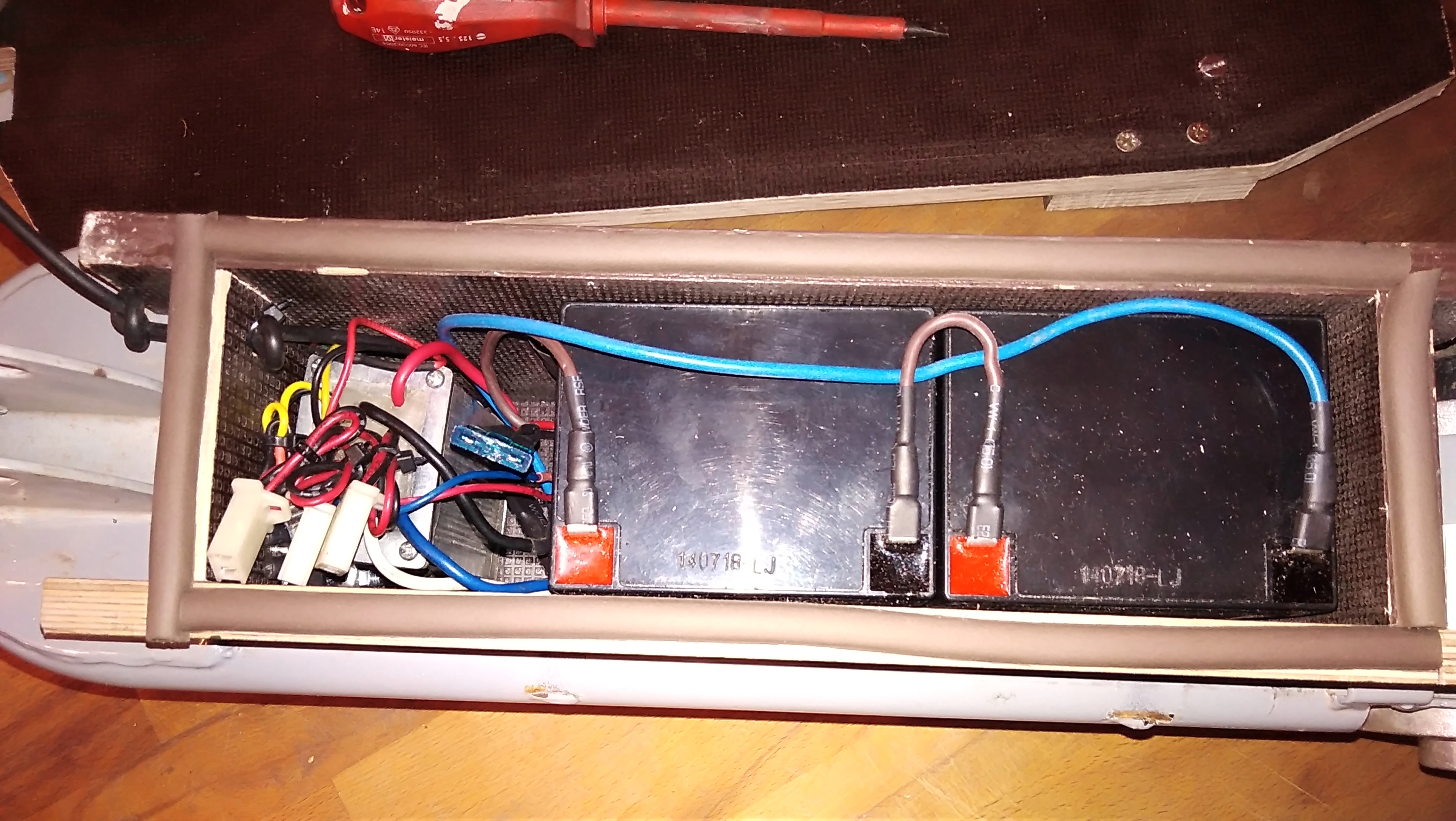 Das Nächste wird sein, einen neuen Kasten für die Akkus und die Elektronik zu bauen. Aber heute nicht mehr.