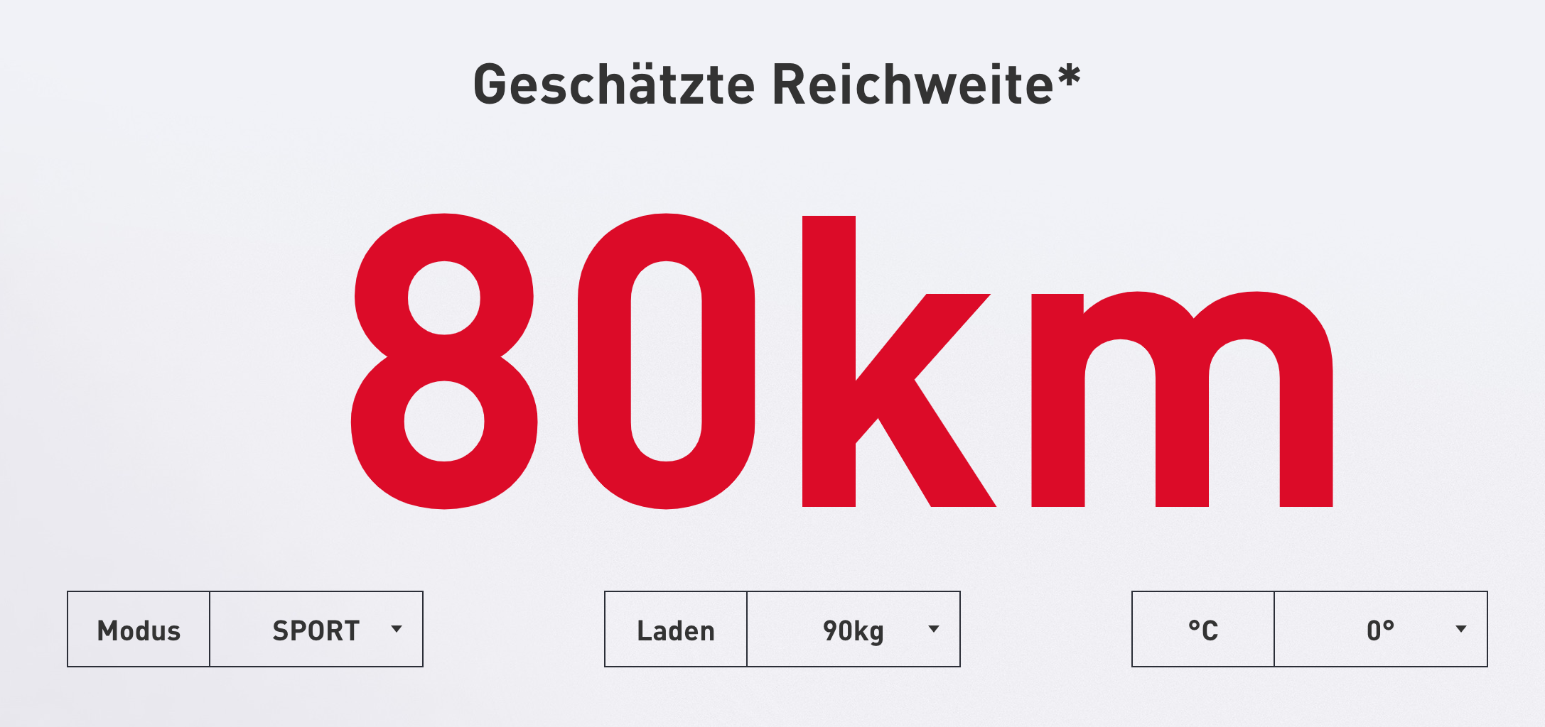 Da passt der Reichenweitenrechner ziemlich gut. 5km wären im Sport-Modus sicher noch drin gewesen', der letzte Rest dann im E-SAVE Sparmodus.