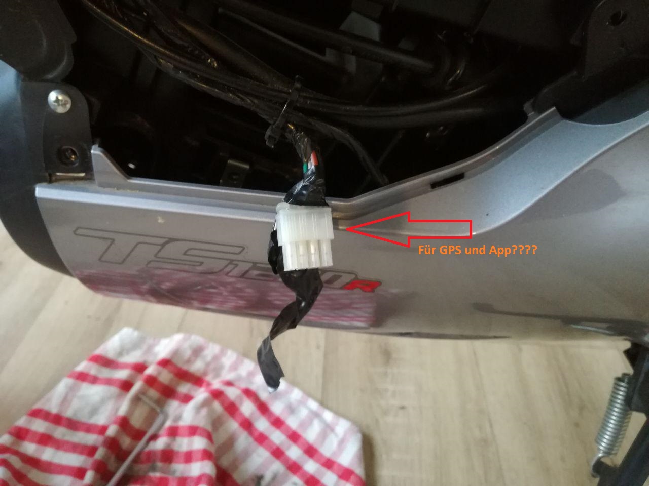 - Motorkabel trennen und Stecker zwischen (= einfacher Ausbau des Hinterrades)
