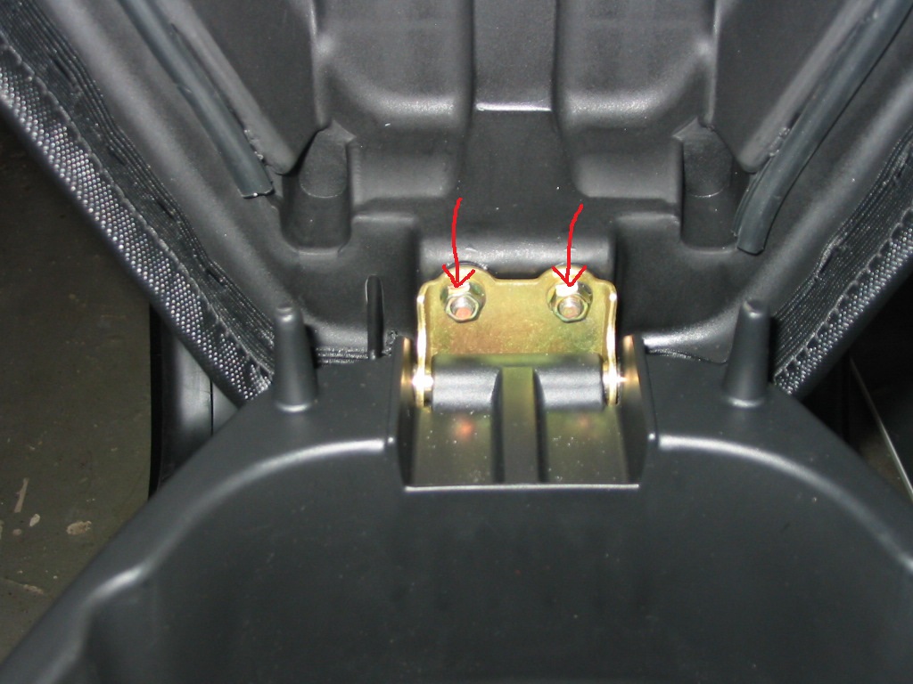 Die 4 markierten Schrauben entfernen. Evtl. noch die Sitzbank trennen (wegen der Hebelwirkung)