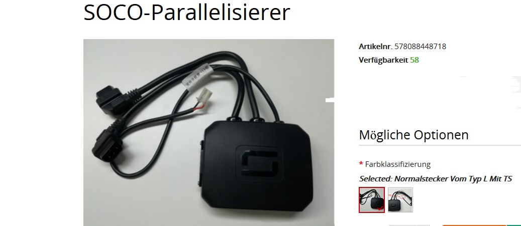 Habe diese Fotos gefunden:Originalzubehör Lithium-Batterie-Parallelisierer TS SOCO-Zubehör.jpgOriginalzubehör Lithium-Batterie-Parallelisierer TC.jpg