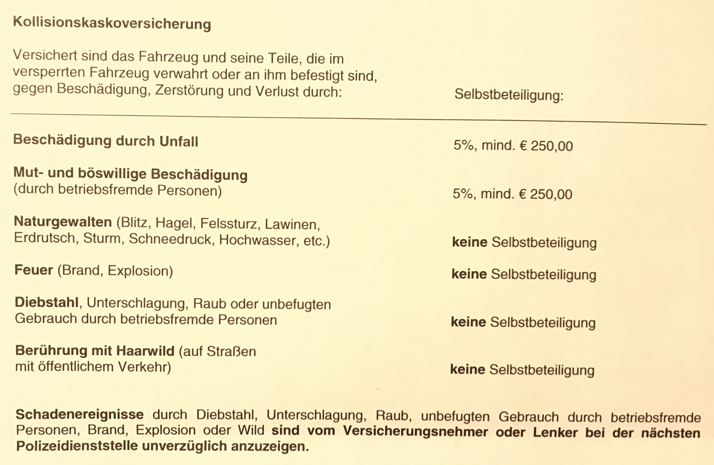 Österreich Vollkasko 228€ (Selbstbehalt 250€)