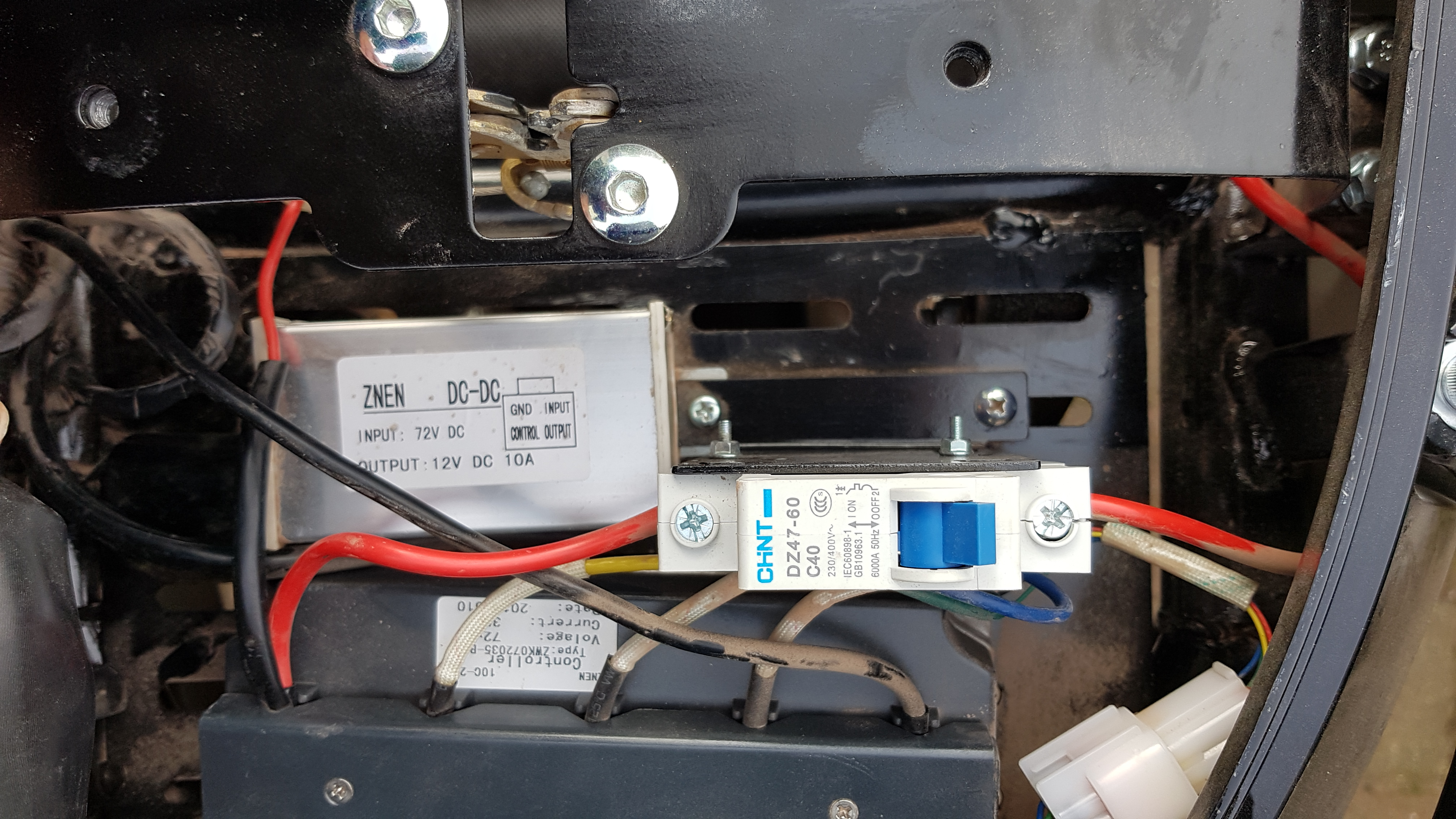 Habe jetzt mal die Sitzbank abgeschraubt da ist die ganze Steuerung verbaut. Also eine Sicherung am DC DC Wandler kann ich nicht finden. Die vier Kabel (rot,gelb,grün und schwarz) gehen vom Anschlusstecker des Wandlers direkt in den Kabelbaum. Die einzige Sicherung die ich gefunden habe ist am Controler angeklemmt und kommt wohl von den Akkus. ASm Wandler selbst liegen nur 72V an,keine 12 V. Ich denke mal es wird der Wandler defekt sein. Weiß jemand wo mann so etwas herbekommt und was es kostet ?