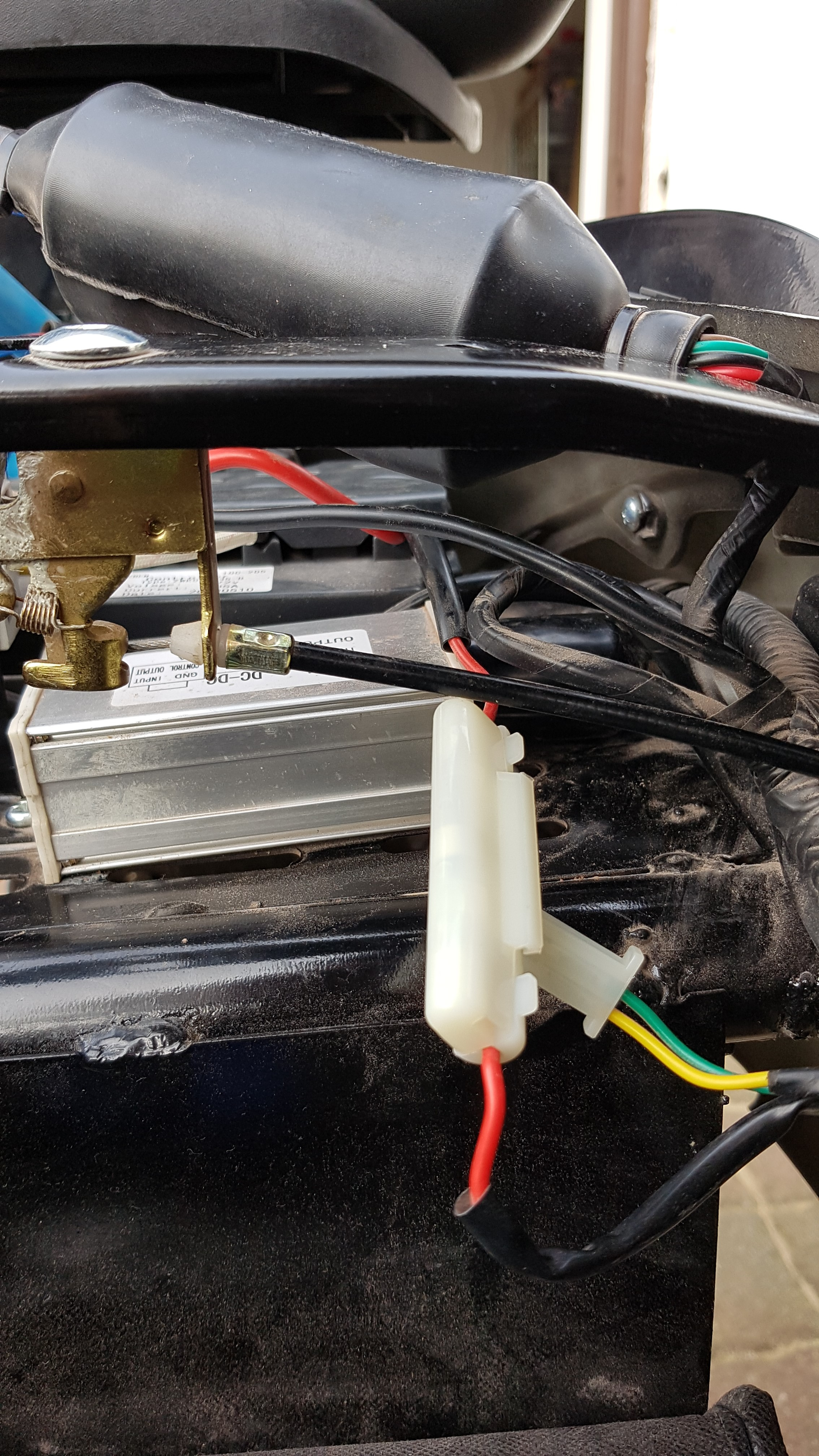 Habe jetzt mal die Sitzbank abgeschraubt da ist die ganze Steuerung verbaut. Also eine Sicherung am DC DC Wandler kann ich nicht finden. Die vier Kabel (rot,gelb,grün und schwarz) gehen vom Anschlusstecker des Wandlers direkt in den Kabelbaum. Die einzige Sicherung die ich gefunden habe ist am Controler angeklemmt und kommt wohl von den Akkus. ASm Wandler selbst liegen nur 72V an,keine 12 V. Ich denke mal es wird der Wandler defekt sein. Weiß jemand wo mann so etwas herbekommt und was es kostet ?