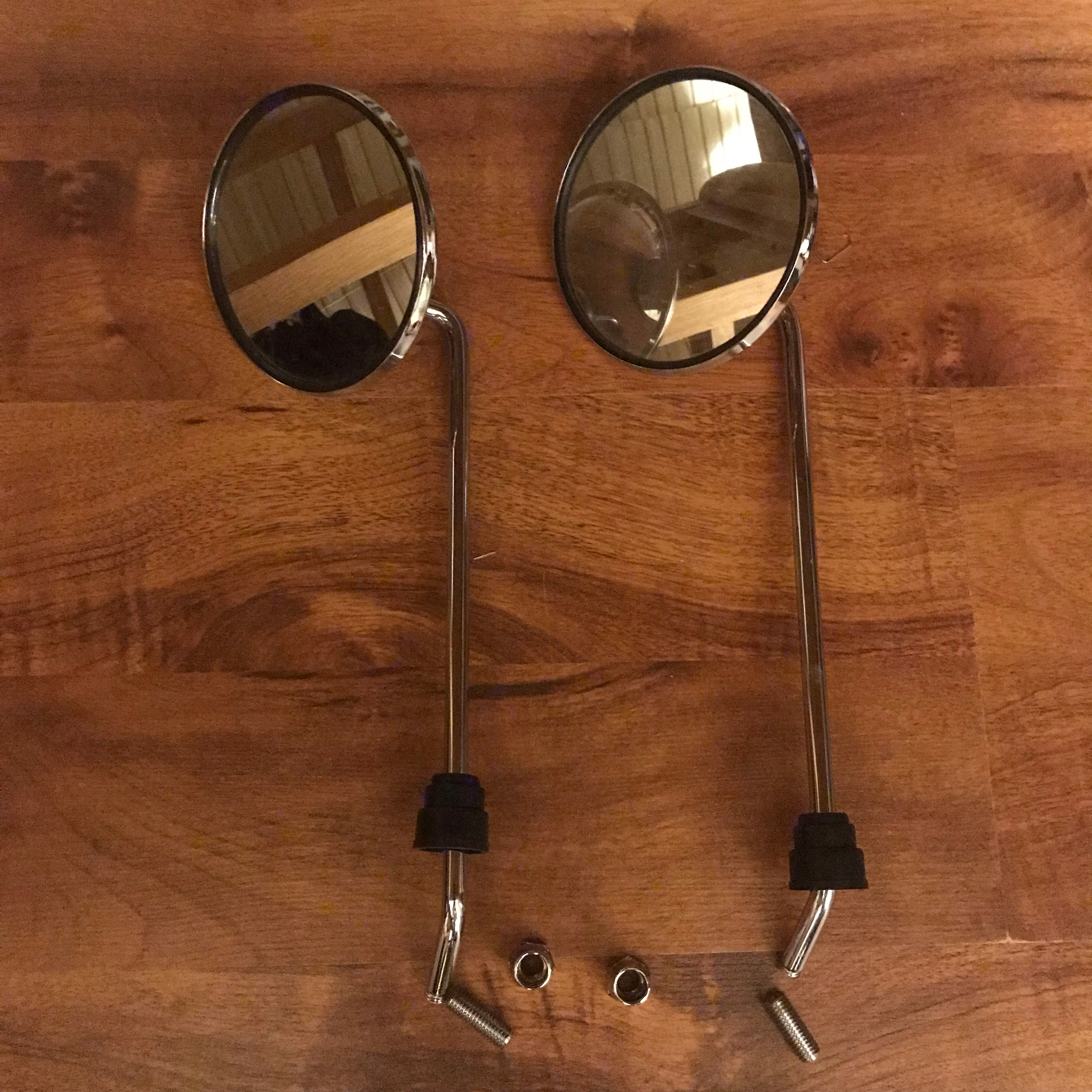 Nach ein paar Kilometern merkte ich, dass sich der linke Spiegel aus seiner Position gedreht hatte und sich ganz leicht hin- und her drehen ließ. Und nach oben ziehen: das Gewinde war bei etwa 2 cm gerissen und steckte in der Kontermutter. Die Gummimanschette hielt die Teile zusammen. [...]