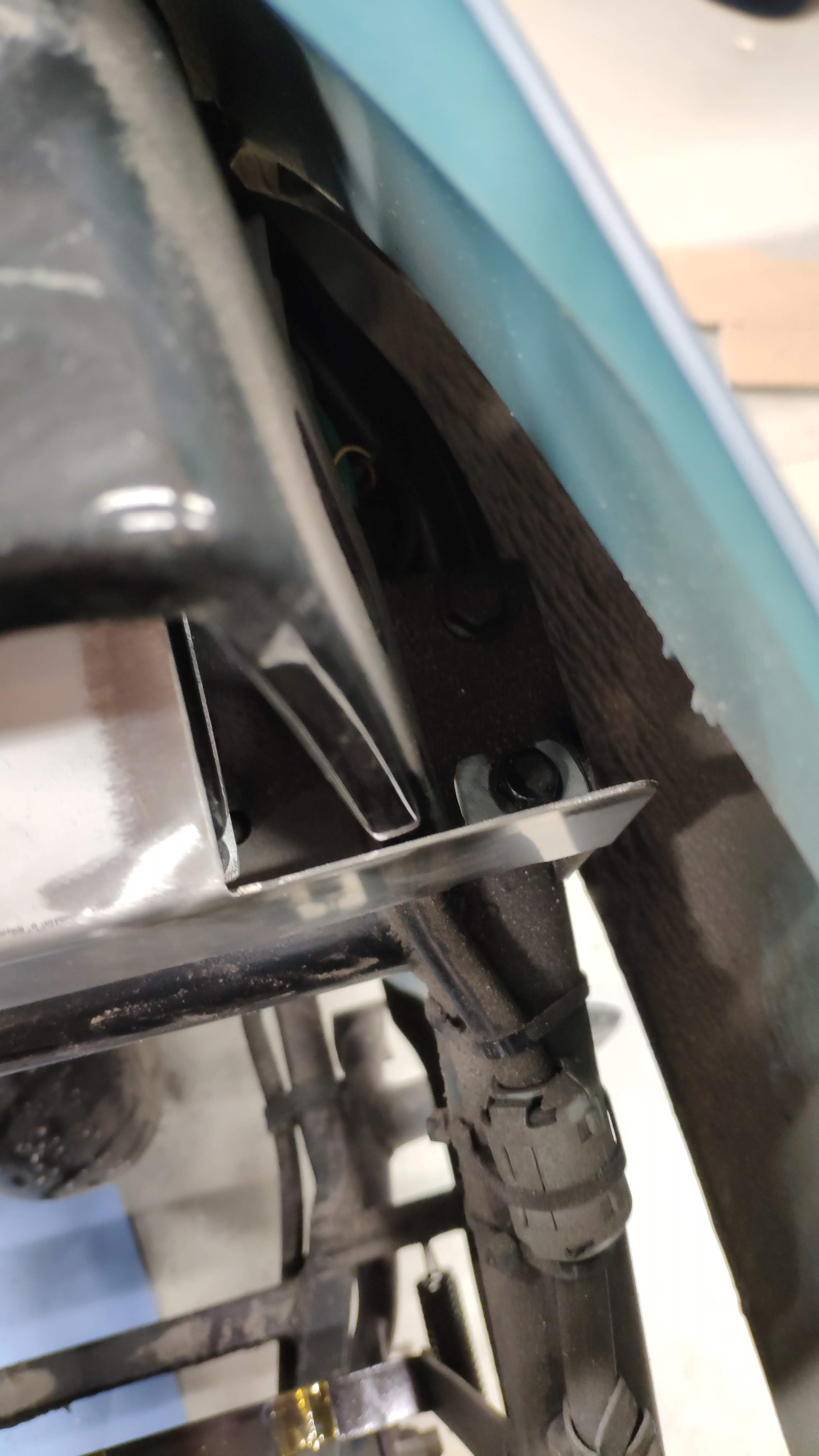 Interessante Lösung! Könnte allerdings mit der Zeit, wenn die Hinterkante des Blechs nirgends aufliegt, bei schlechter Straße auf und ab schlabbern und mit der Zeit die Isolierung der Pole auf dem Controller durchscheuern, begleitet von entsprechendem Feuerwerk?
