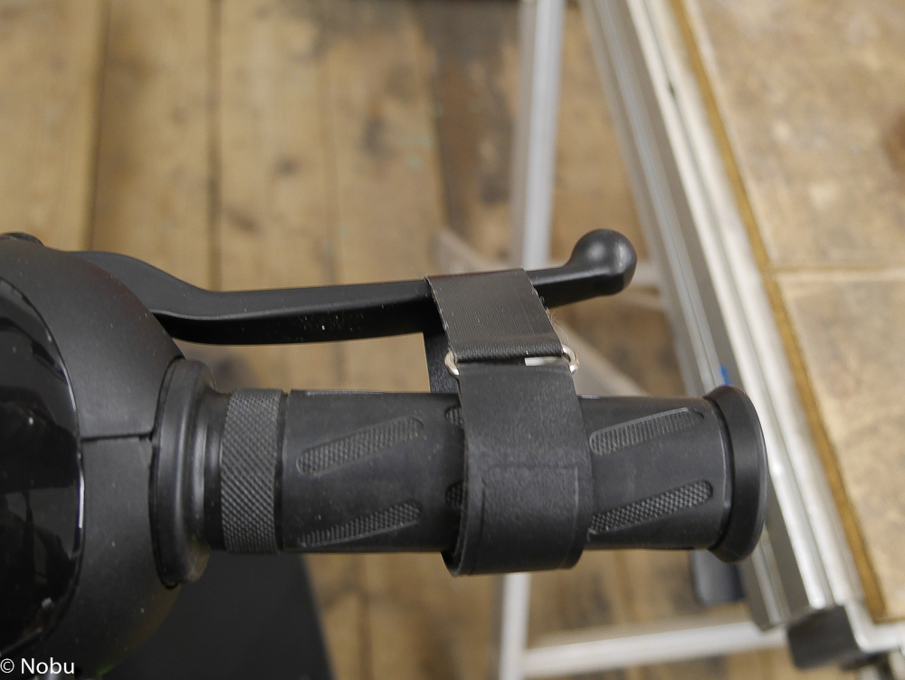 Das Klett-Spannband ist ursprünglich zum Zusammenbinden von Skiern gedacht und hält die Bremse ausreichend fest.