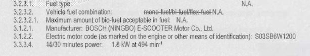 D.h. nicht die Maximalleistung sollte entscheidend sein, sondern die über 30 Minuten abgegebene Dauerleistung. So steht es auch in meinem CoC der Super Soco. Dann wird nämlich aus 2,4kW (Werbung = max. Power) 1,8kW CoC. Das kann man bei 45km/h am Prüfstand wahrscheinlich nachmessen...