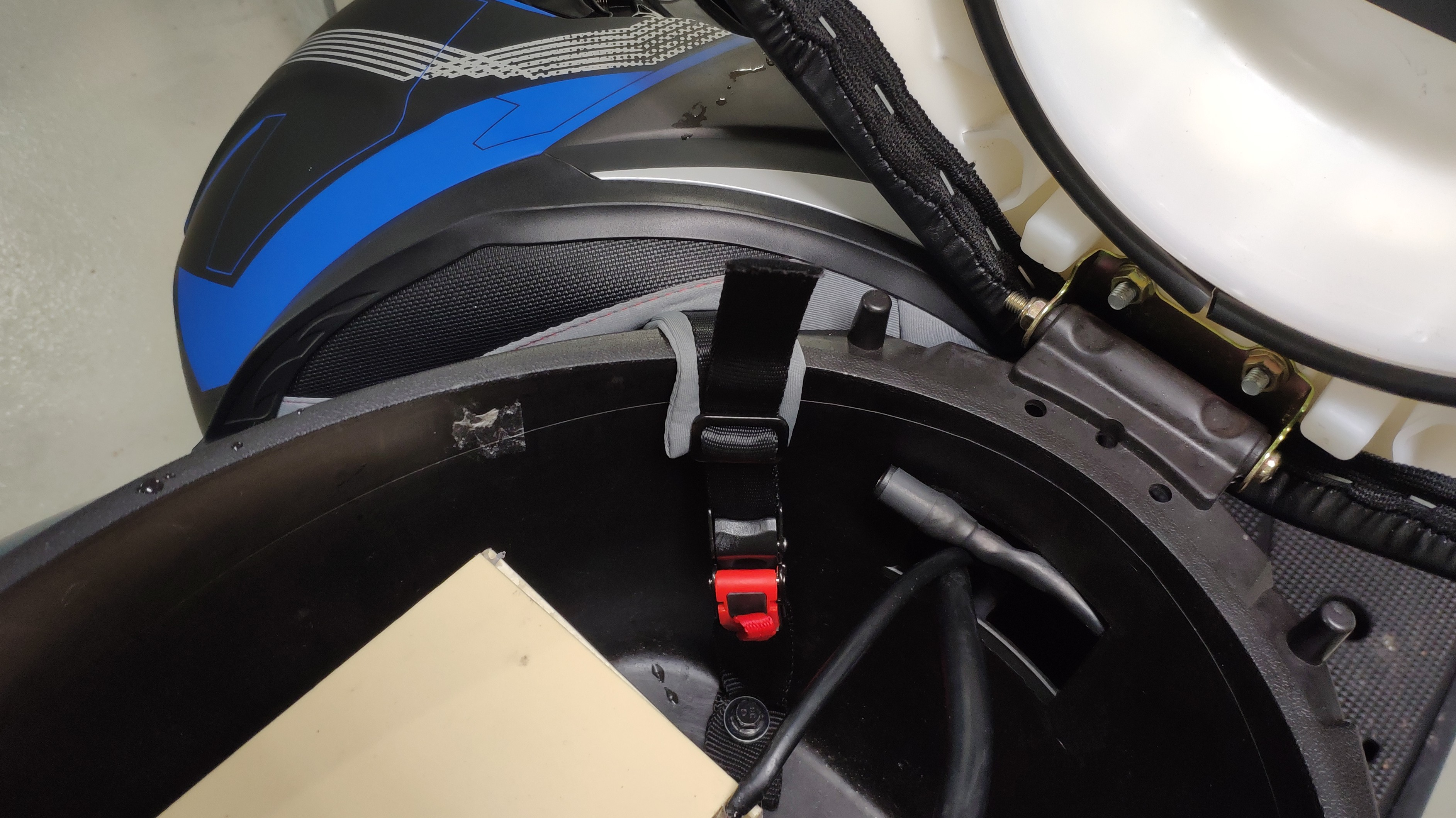 Da ich im Winter und bei Schlechtwetter nicht mit dem Unu Helm unterwegs bin hatte ich immer das Problem, dass ich den Schnellverschluss irgendwie in die Sitzbank klemmen muss..
