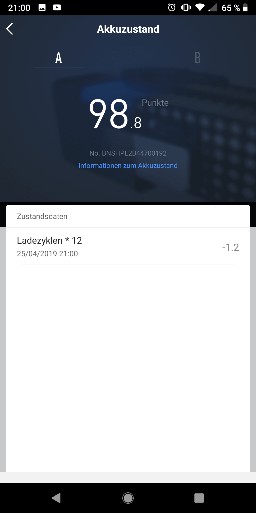 - „A“ bezieht sich auf Akku A (unter dem Durchstieg), „B“ bezieht sich auf Akku B (unter der Sitzbank)