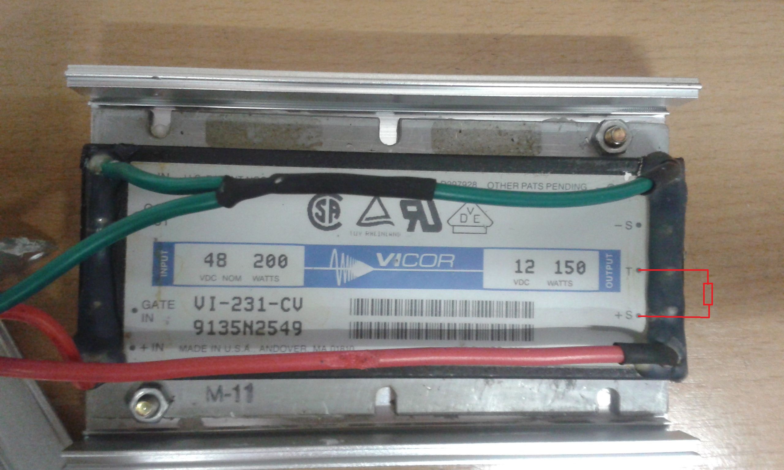 im Roller ist ein 12V DCDC verbaut ,der unter Last auf 11,7V einbricht,der Vicor lässt aber eine Spannungssteigerung um 10% zu indem man einen R um die 40k wie im Bild verlötet.