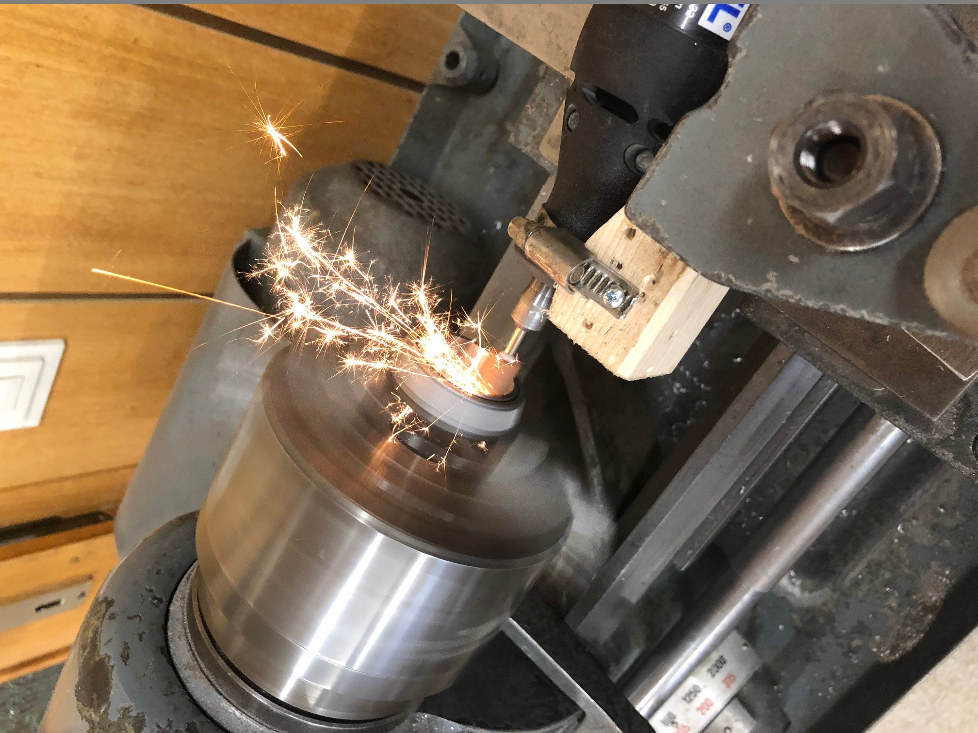 . Sogar Kegelrollenlager anstatt der serienmäßigen Axialrillenkugellager. Der Weg zur Lösung führte über die Firma Wömbi-Motorradteile in Roden. Der Geschäftsführer Herr Stenger konnte mir trotz aufwändiger Recherche allerdings auch keine passenden Lager anbieten. Aber zumindest das Obere (25x45x15) war vorrätig, beim Unteren habe ich auf eines mit den Maßen (30x48x15) zurückgegriffen und anschließend den Innendurchmesser auf 31mm aufgeschliffen. Mit einer Drehbank und einem Dremel im Support hat das eigentlich viel besser als erwartet geklappt (siehe Bildchen) . Sicher hat das Lager jetzt nicht mehr die Rundlaufpräzision wie vorher aber beim LKL ist es egal ob das es eine Abweichung von zwei Hundertstel oder einem Zehntel mm hat. Der Roller fährt wieder, meine Freunde vom TÜV sind zufrieden und ich auch.