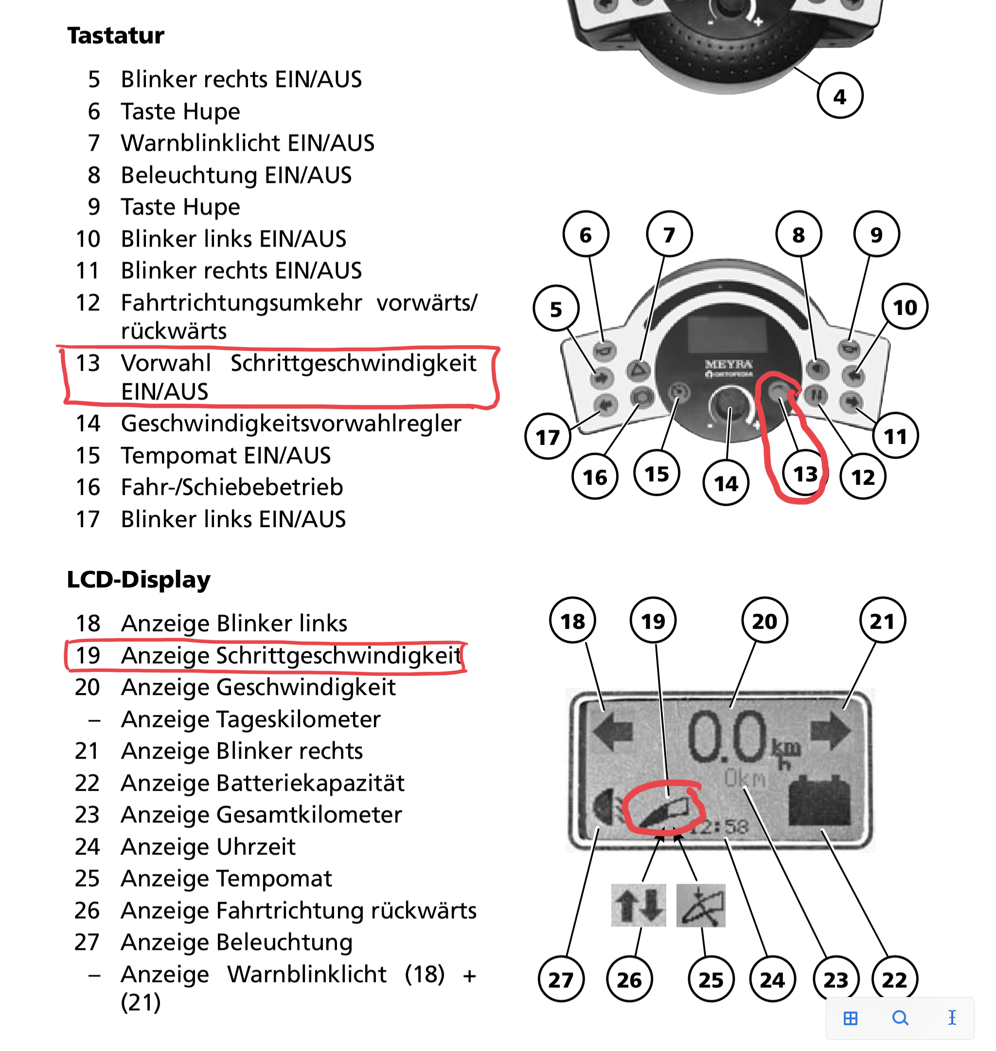 - Vorwahl Schrittgeschwindigkeit ist aus (egal ob an oder aus, er ist immer bei so 5-5,4km/h)
