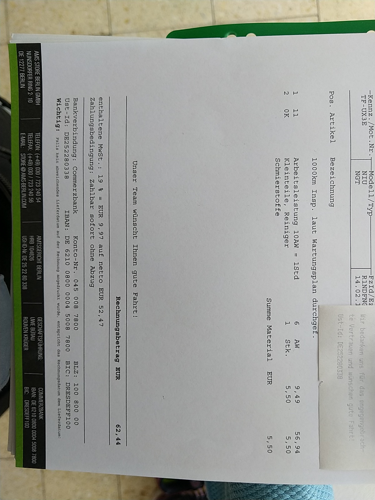 Ich hatte natürlich vorher nachgefragt was es kostet (sollte man bei allen rund ums KFZ immer machen!). 89,95€