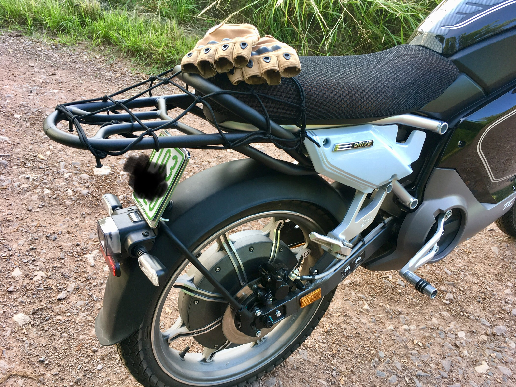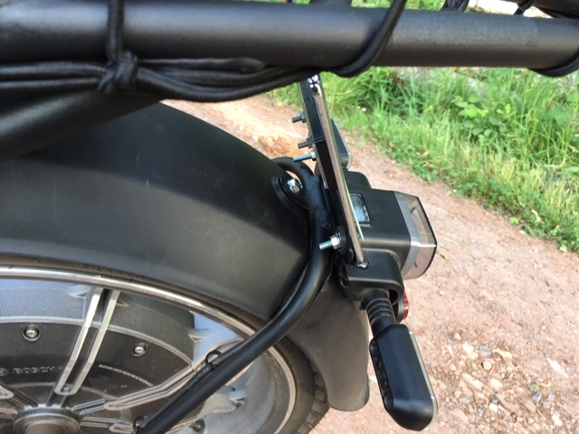 Das Kennzeichen habe ich etwas angeschrägt und somit taucht es unter dem Gepäckträger durch.