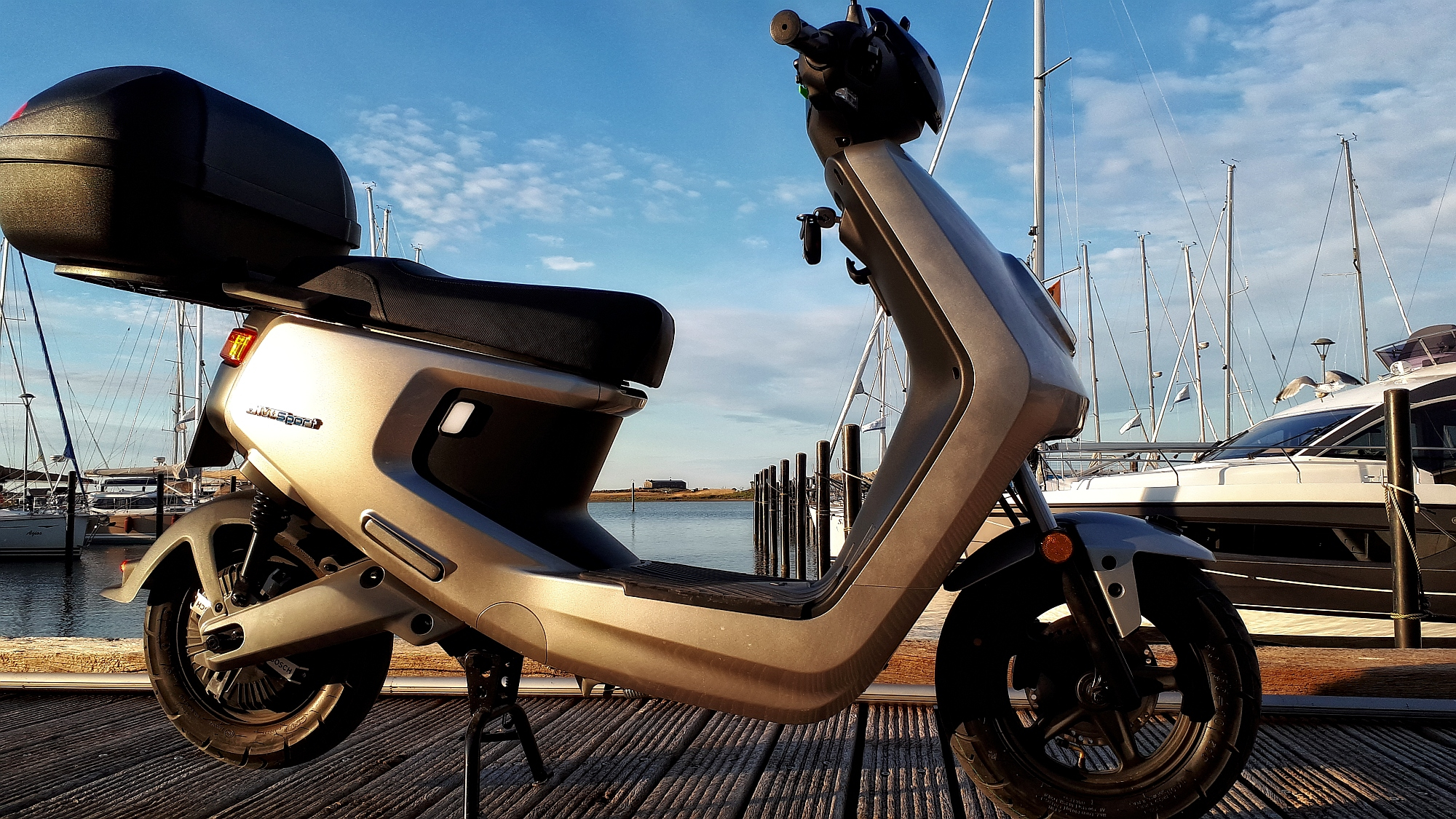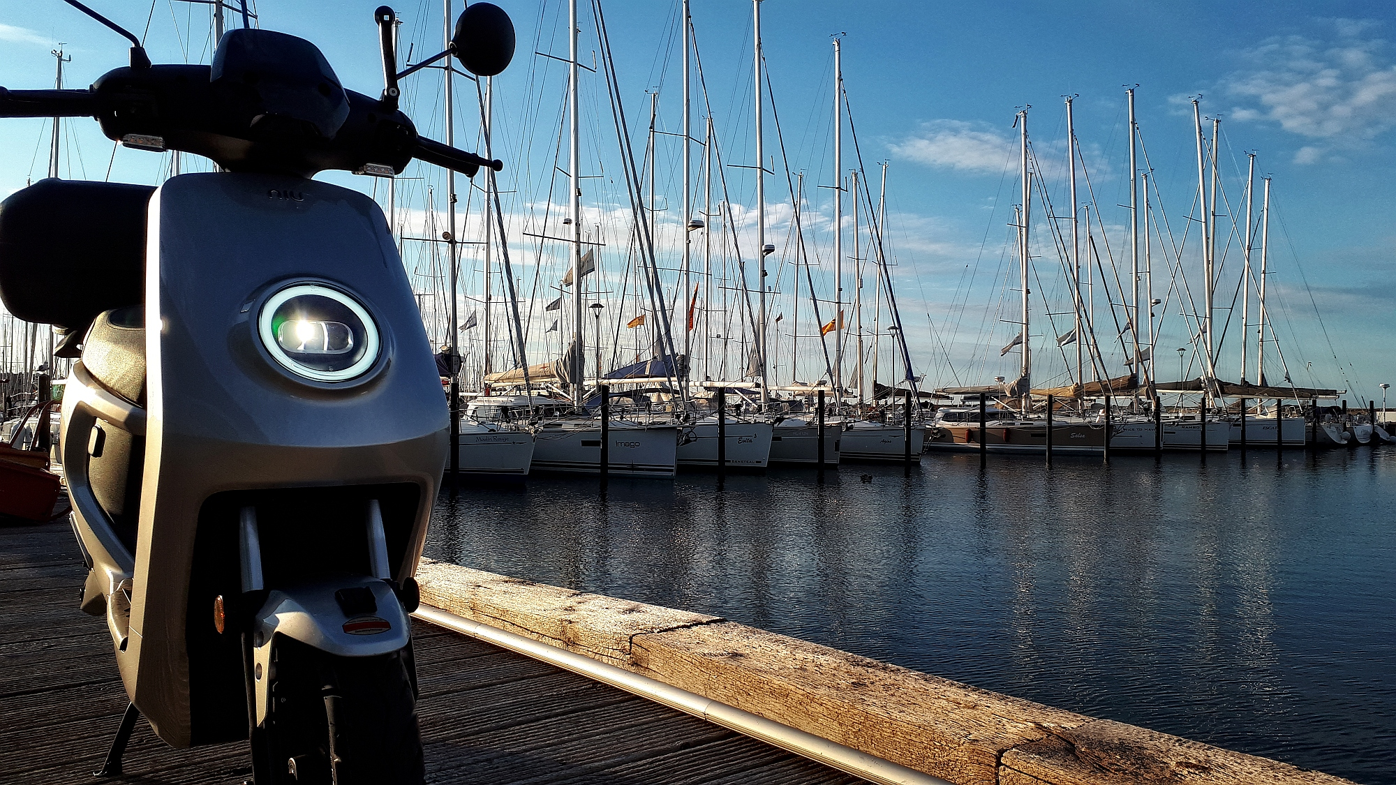 Ein NIU M+ am Yachthafen in Heiligenhafen. Ostsee.