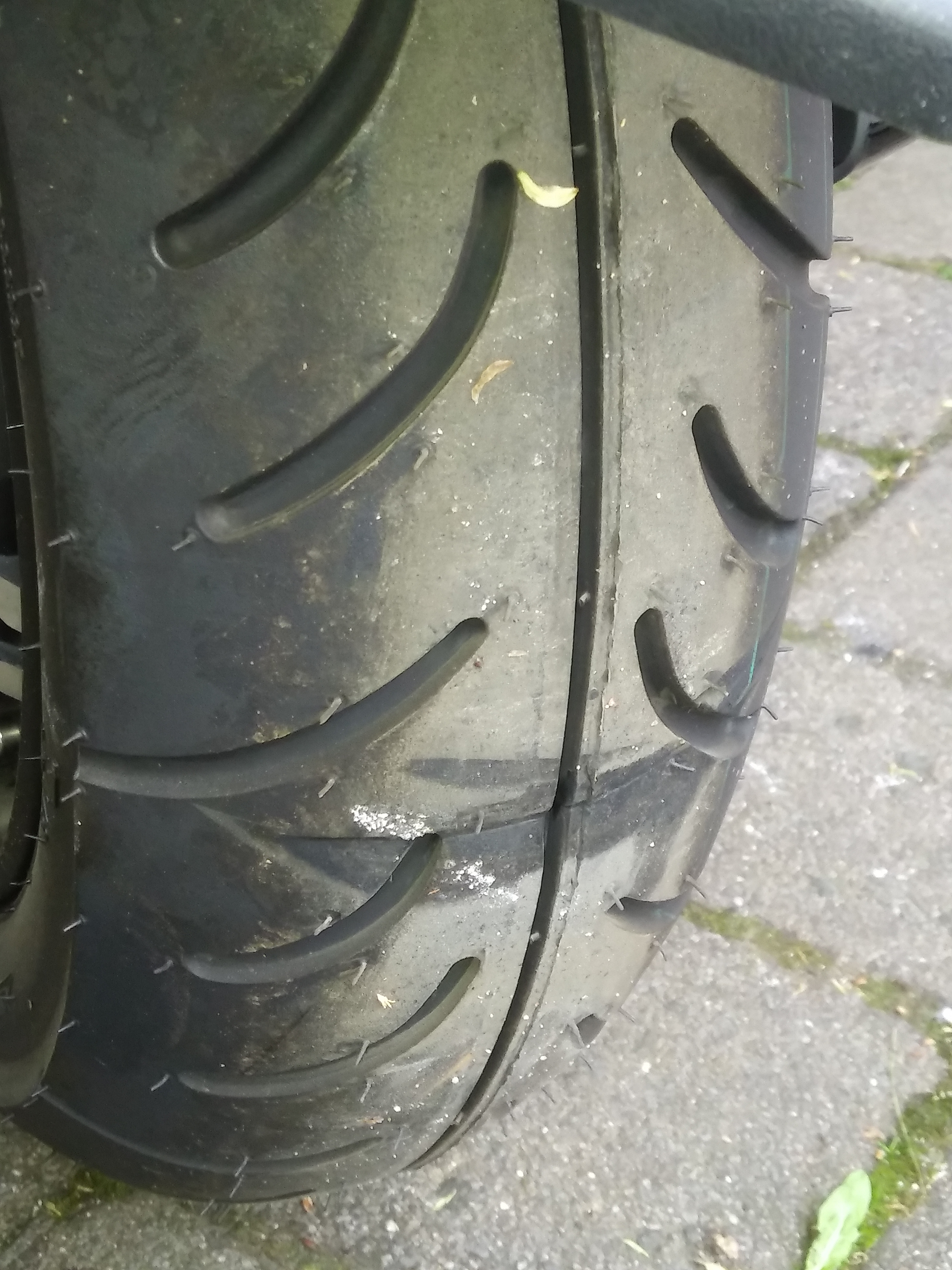 So nun stand der Roller da und sah genau hin. Reifen und der Gesamte Roller war Schmutzig, nach genauem Hinsehen ein Lack Platzer an der oberen Armatur / Kratzer an der Front / Kratzer an beiden Seiten / Plastik Fußraum verkratzt / Hauptständer Kratzer und Flugrost / Außenspiegel nicht montierbar / Felgen von irgendwelchen Pollen verdreckt.