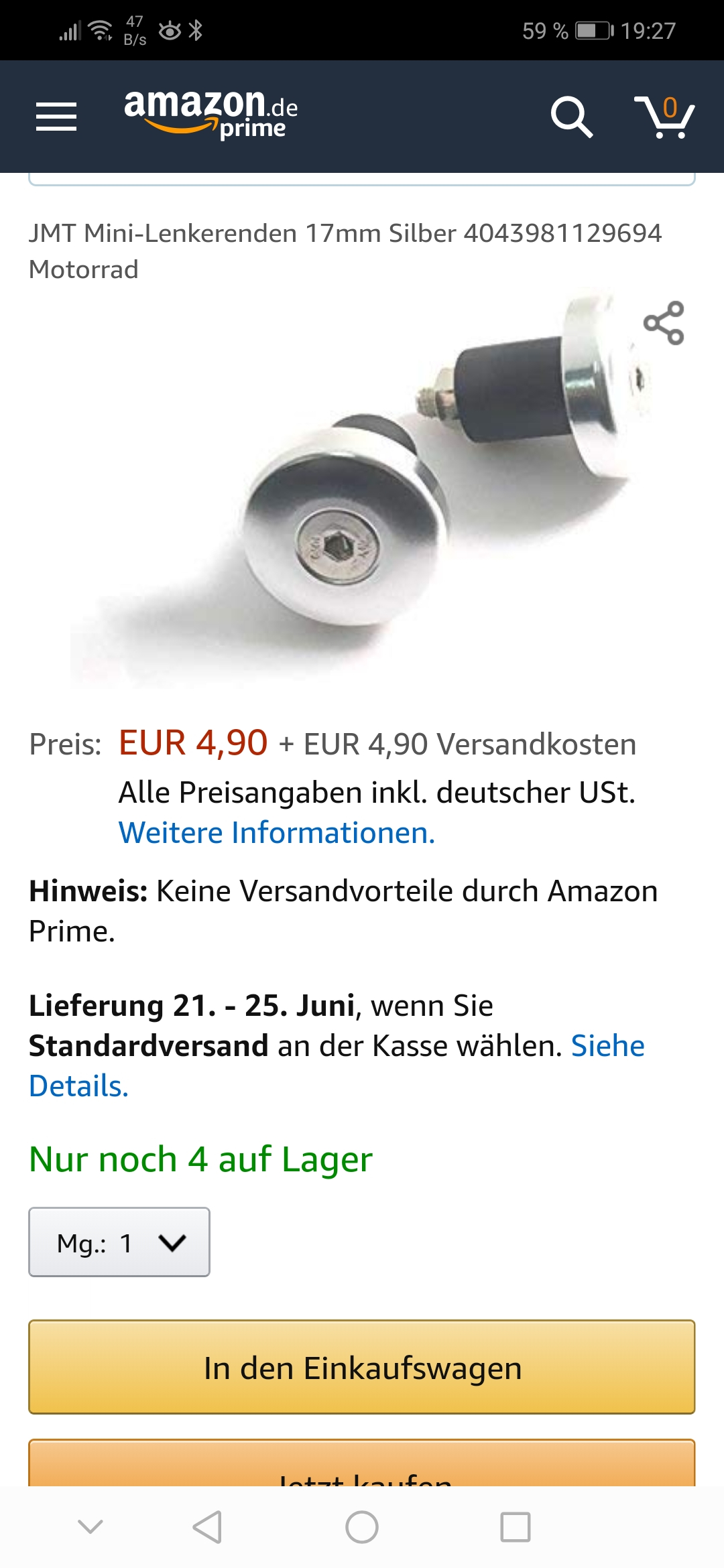 Keine Angst du kannst die einfach abziehen... Naja einfach ist ein wenig untertrieben, aber es geht schon. Der Lenker ist ein 17mm Stahllenker. Die "Metallfeder" hält die Kappe fest und verklebt ist da nichts. Ich musste nur den Gummi noch ein wenig bearbeiten und die Schraube anziehen... Fertig. Ich bin echt zufrieden. Anbei die Bezugsquelle...wefunkster hat geschrieben: Mo 17. Jun 2019, 17:37OK, sehr geil!