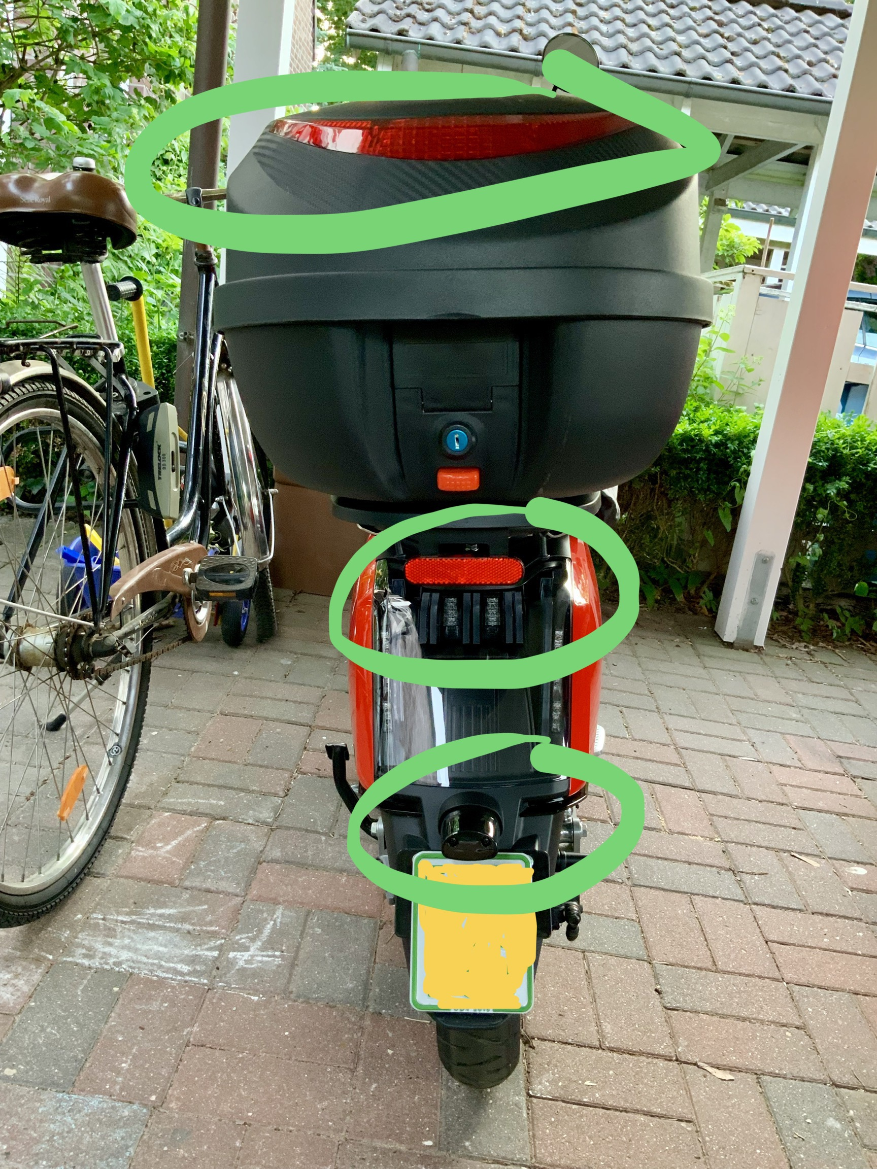 davidflorian hat geschrieben: Fr 21. Jun 2019, 21:32 Wieso befestigt ihr den Kennzeichenhalter nicht wie vorgesehen unter der Beleuchtung und den Reflektor mit dem beiliegenden Halter oben?