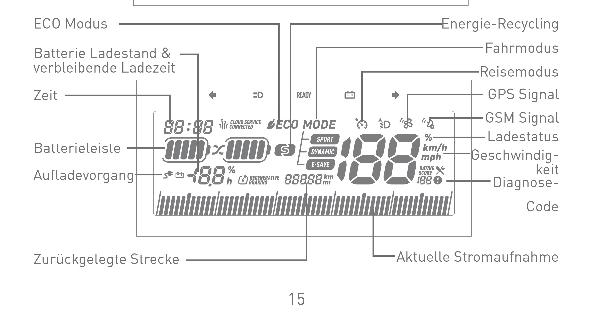 ...der Blick in die Bedienungsanleitung wird oft unterschätzt ;) Die Balkenanzeige zeigt den aktuellen Stromverbrauch beim Fahren bzw. die Stromeinspeisung beim Rekuperieren.