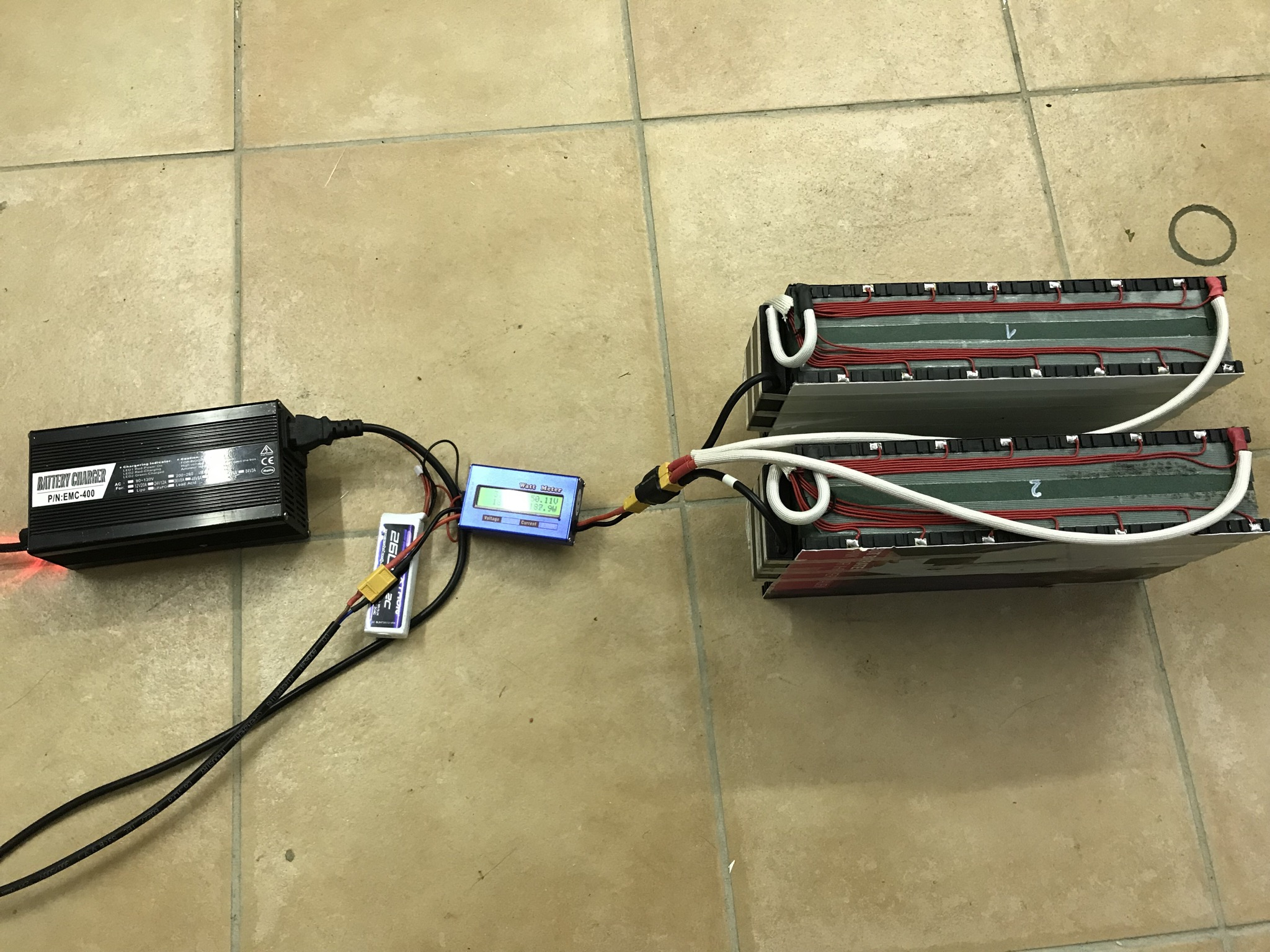 Ich habe XT-60 und dann XT-90 Steckverbinder genommen, das Ladegerät musste natürlich auch ein