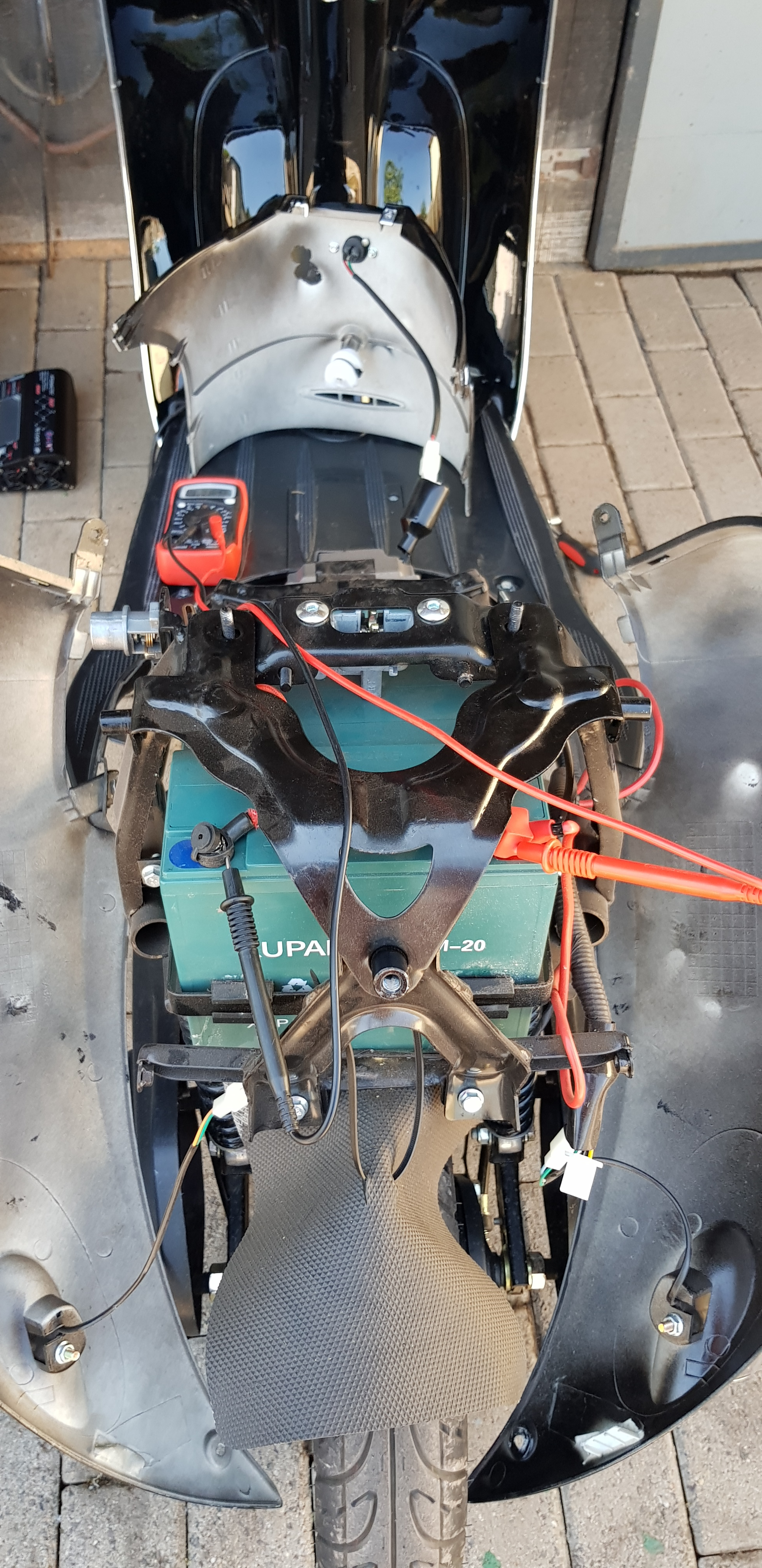 Nun, Batterie Nr.5 ist hin und Nr.3 schwächelt. Und das mit dem Vorderrad gegen die Wand stellem, laß man lieber, sonst gehen noch Motor oder Controller defekt.....