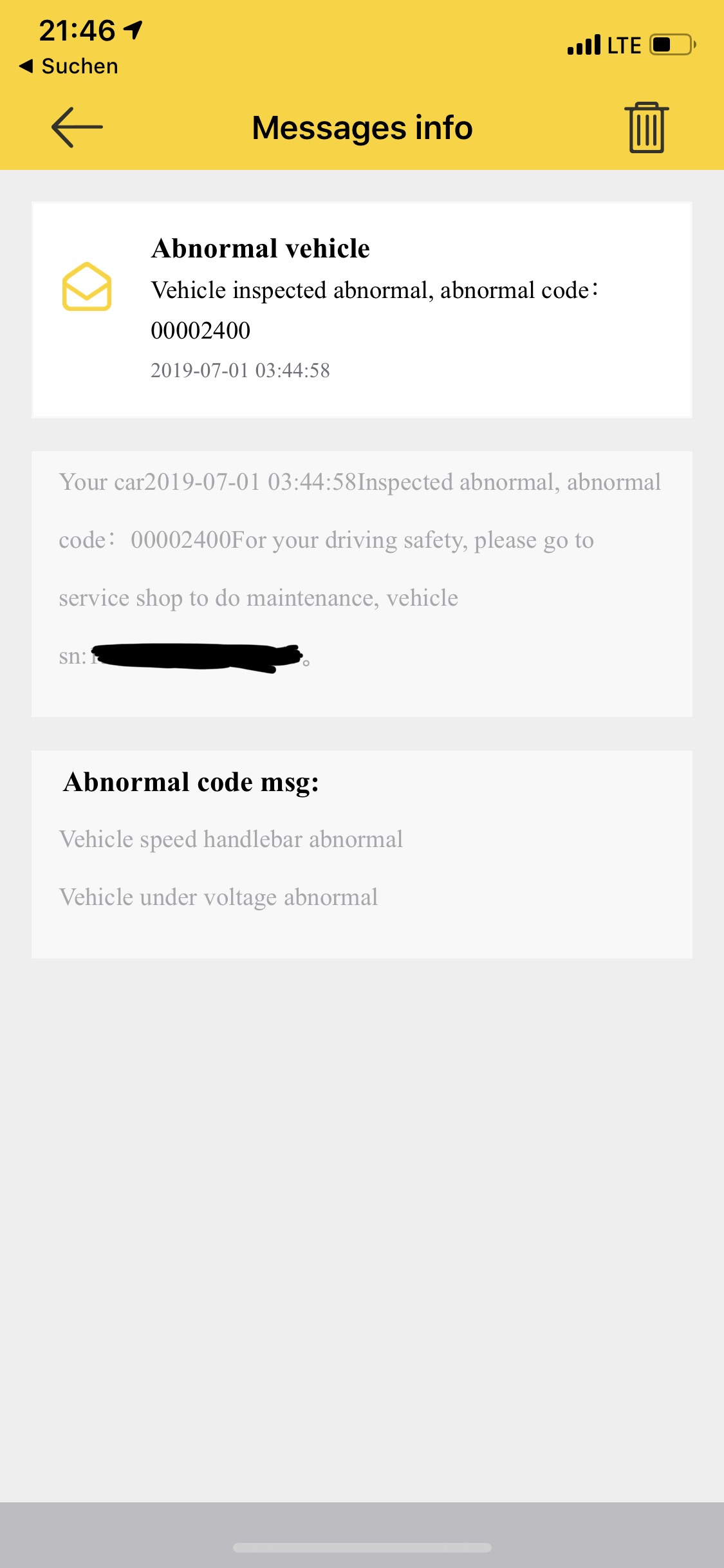 Also zwischenzeitlich wurde er ausgetauscht, war dann wieder weg und nun habe ich einen komplett neuen, der allerdings nach rund 300-400km ein ähnliches Problem hat. Auf jeden Fall geht er nicht mehr an. Inzwischen kann ich ja Fehlermeldungen auslesen. Siehe Anhang. Ansonsten habe ich es mit einem anderen Akku probiert (Danke an chrisboy) und festgestellt, dass sein Akku funktionierte. Meiner wiederum nicht in seinem Roller. Was nahe legt, dass der Akku (mal wieder) defekt ist. Ich bin mir aber nicht sicher, ob der defekt nicht vom Roller herbeigeführt wird.