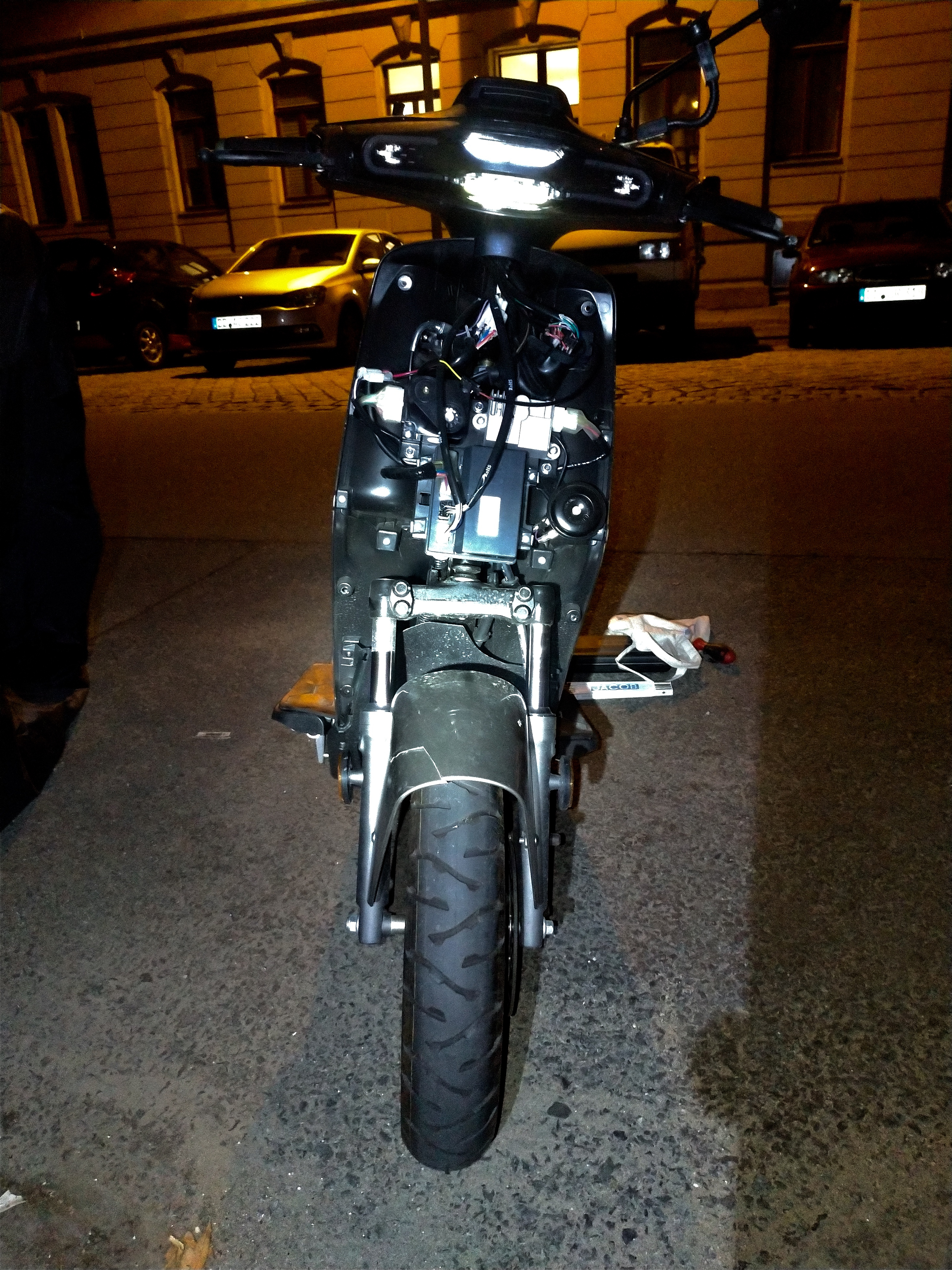 Der erste Funktionstest war noch ok. also habe ich die Front wieder angeschraubt. Beim nächsten Neustart waren Blinker und Fahrstufenschalter tot. Ausschalten und Hauptsicherung haben nichts geholfen. Auch das Abblendlicht funktionierte nicht mehr!