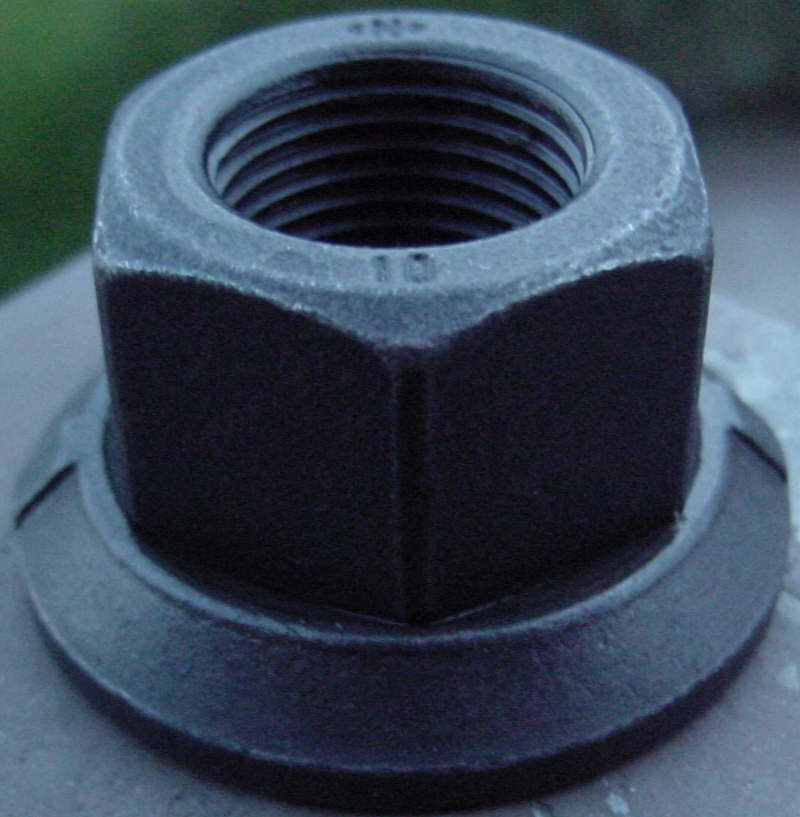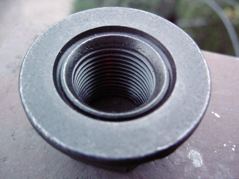 Und hier im Großformat (notfalls draufklicken zum genauer betrachten) nochmals die VW-LT Radmutter mit einer unten topfebenen und ununterbrochenen, höchst soliden integrierten Unterlagscheibe: