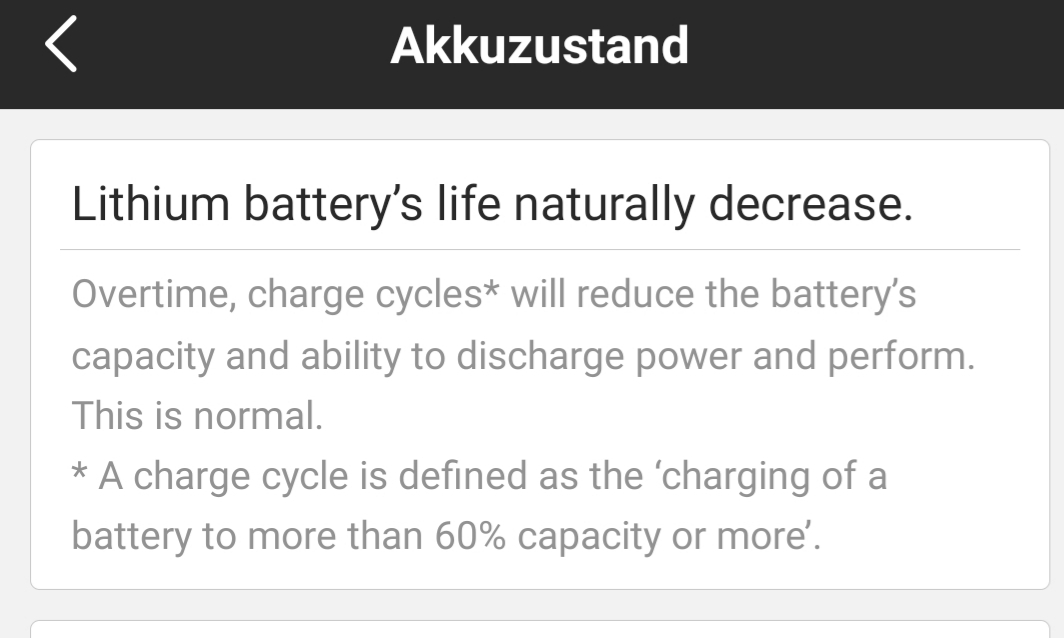 Wenn das so ist verstehe ich aber nicht, wie Leute mit 4000km 20 Zyklen haben, denn mit 20 Zyklen kommt man ja maximal auf ca. 1200km. Ich habe jetzt in den letzten Wochen immer nachgeladen, wenn ich die Möglichkeit hatte, und trotzdem ist meine Battery Health etwas stärker gesunken als wenn ich immer auf 20% fahre. Gefühlt (habe leider kein genaues Protokoll geführt) wurde ca. alle 50% Akkuleistung ein Zyklus gerechnet und zwar immer wenn ich den Akku vom Roller getrennt habe und das hat mich ehrlich gesagt etwas verwirrt. Ich wünsche mir echt (wie wahrscheinlich alle
