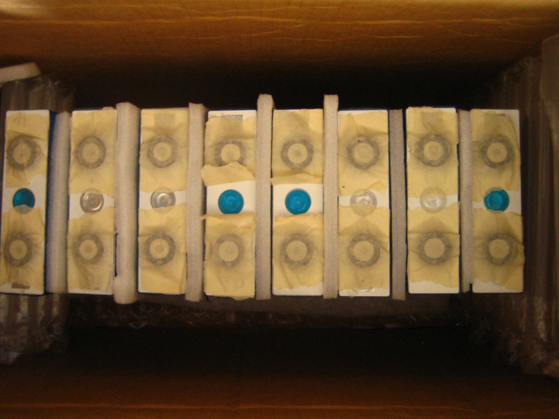 IATA verbietet den Transport von Li-Ionen Akkus mit einem SoC >30% Siehe: Lithium Batteries as Cargo. Ich gehe davon aus, dass aufgrund der IATA Regeln die meisten Zellen, die in den Handel kommen einen SoC <30% aufweisen. Für meine galt das in jedem Fall.