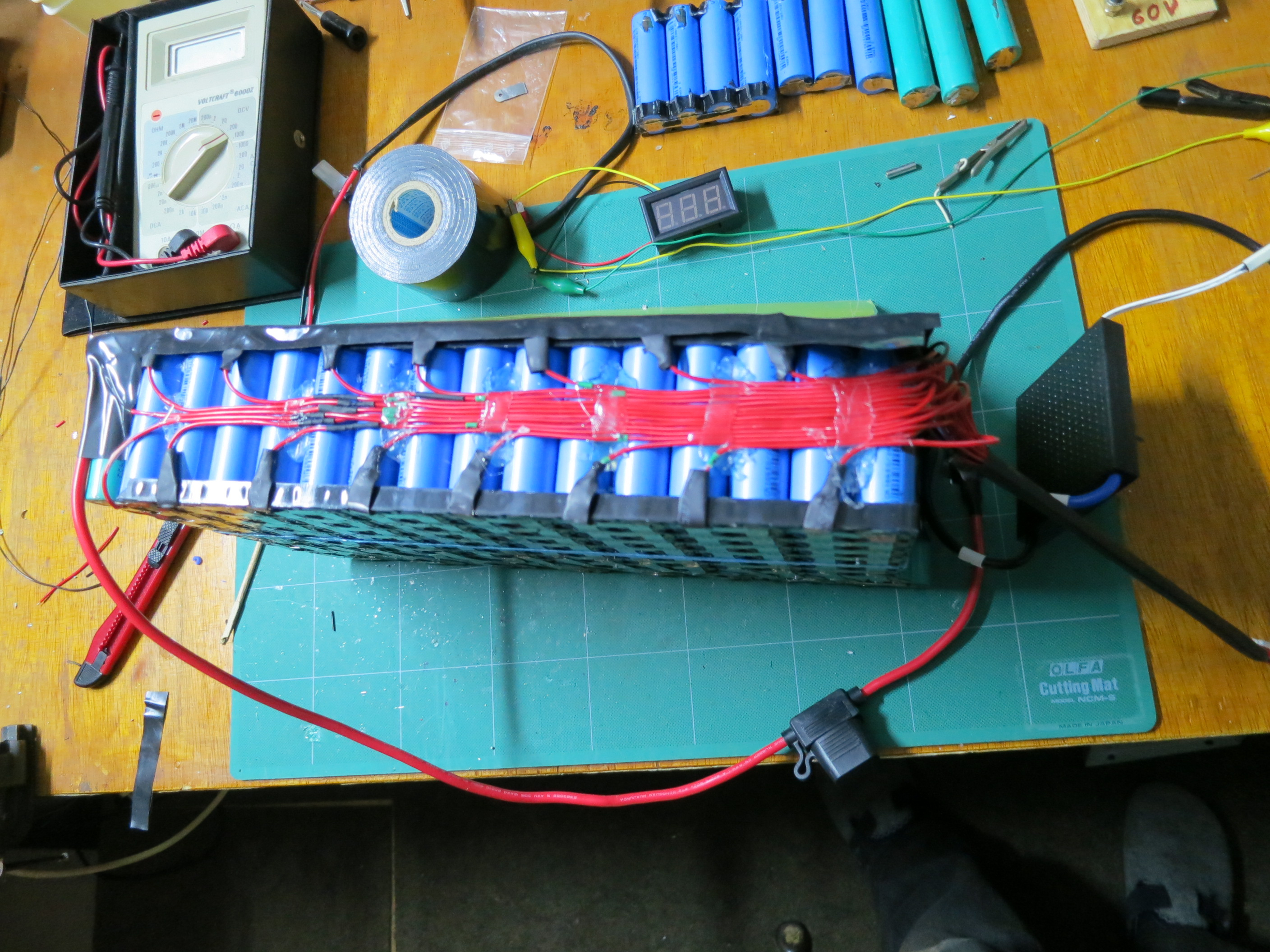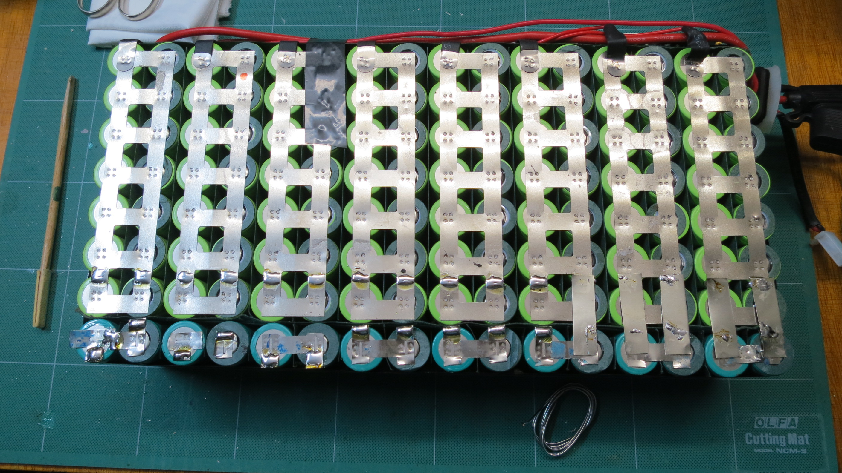 Als Erstes habe ich den Akkublock um eine Reihe Zellen erweitert, um die Kapazität zu erhöhen.