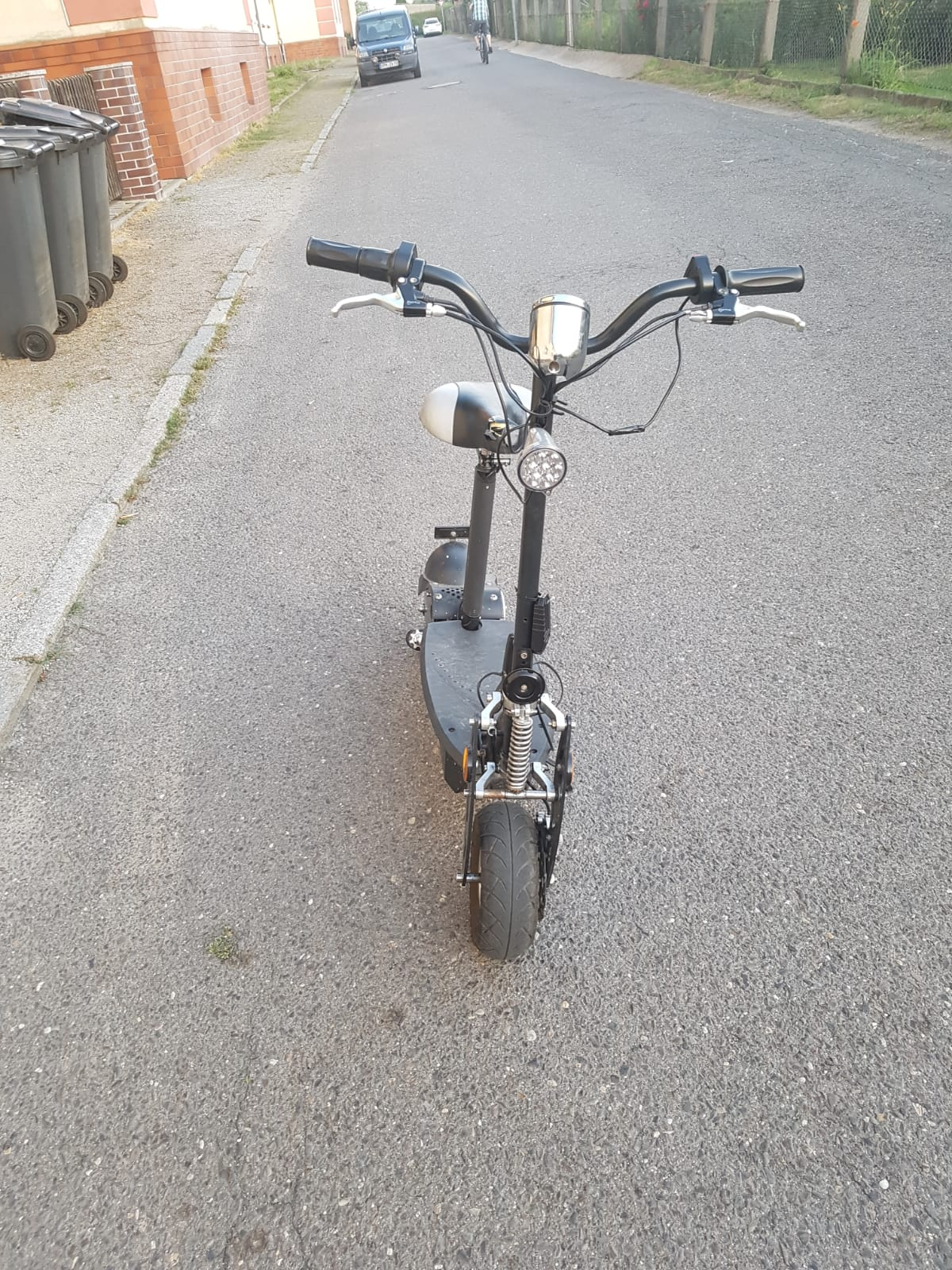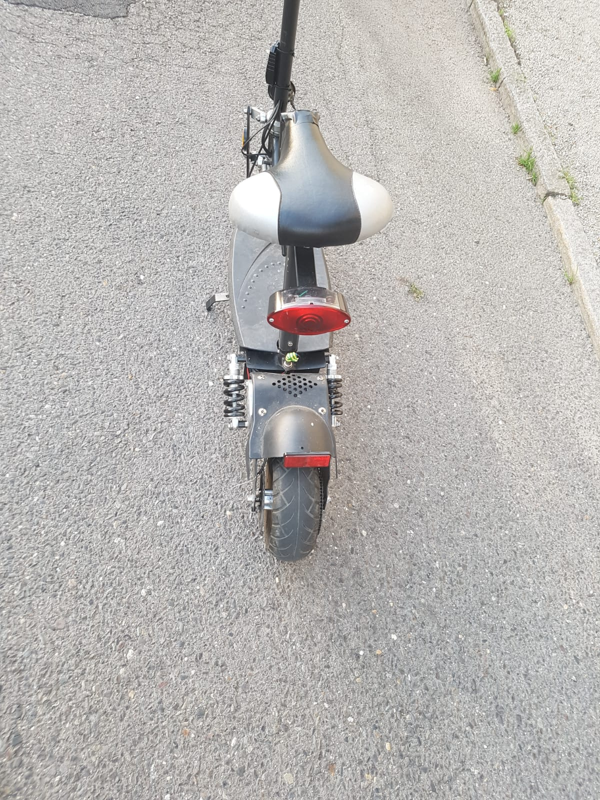 Auf jeden Fall ein Fahrzeug, was im Forum unter dem Bereich E-Scooter "Forca / Mach1 / Rolektro / eFlux" und andere geführt wird. Sieht aber nach einer schon älteren Variante aus. Und nach einer Variante, die nicht für den öffentlichen Verkehrsraum zugelassen ist, weil ich nicht erkennen kann, dass eine Halterung für das kleine Versicherungskennzeichen vorgesehen und vorhanden ist.