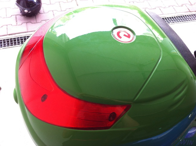 Übrigens, falls das Emco-Topcase auch (wie mein Eyecase) zum Klappern neigt: einfach mit 2-3 Streifen Tesa-Moll zwischen Deckel und Wanne abdämpfen. Beim elektrischen Fahren nervt halt jedes Klappern