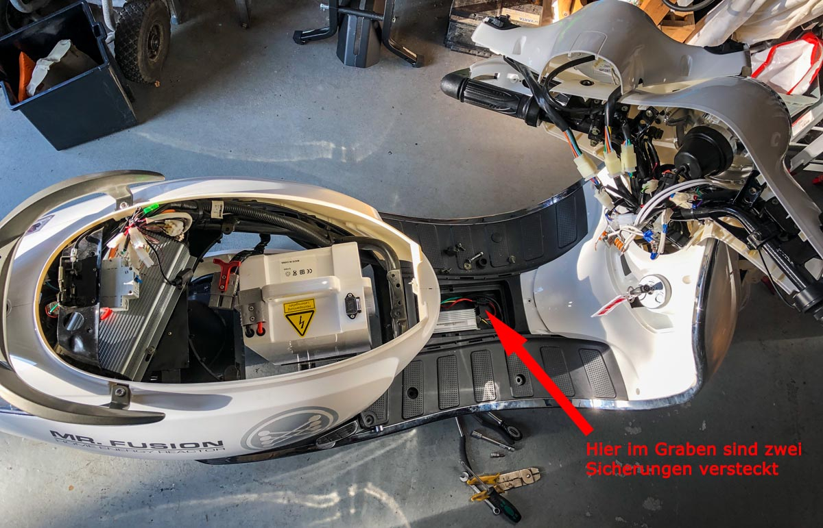 Aber mann mann, *abgesichert* ist der chinesische Kabelstrang unter aller S** - nämlich so gut wie gar nicht... Wenn sich an der einen oder anderen gewissen Stelle ein Kabel aufreibt, dann steht der komplette Roller in Flammen.