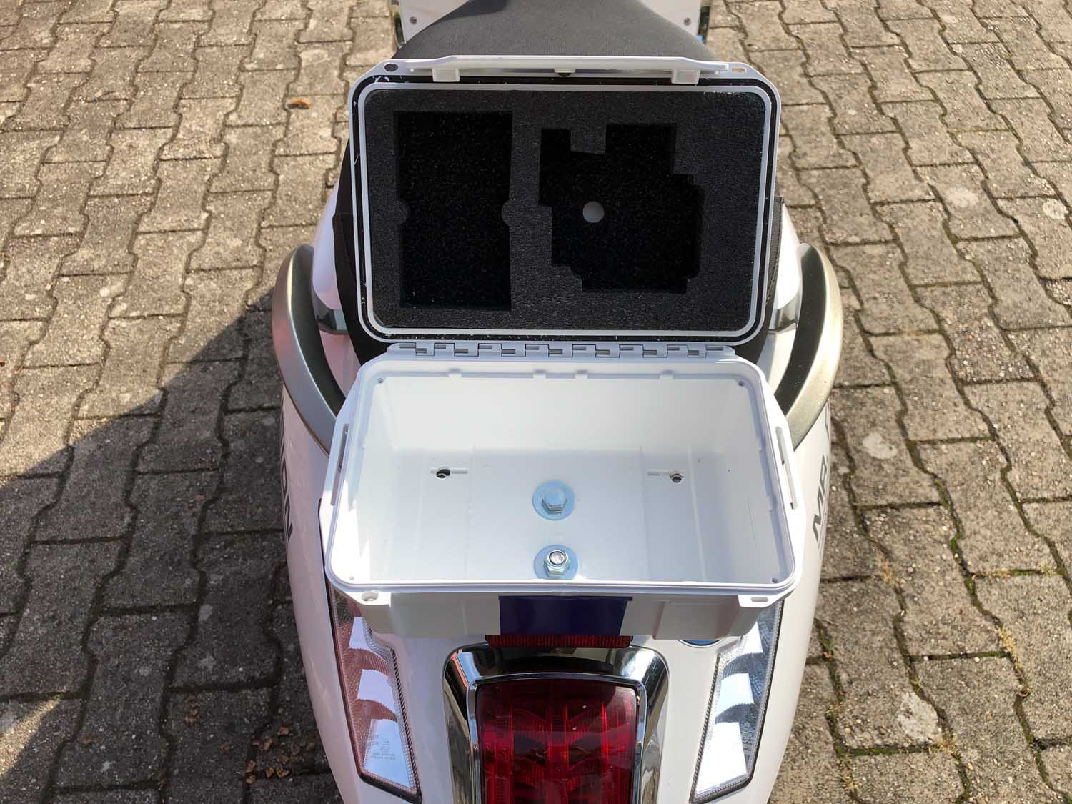Und wenn man noch etwas übrig hat: Der Batterie-Sarg verträgt auch etwas Geräuschdämmung (die 2. Glocke am Roller)