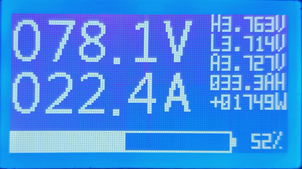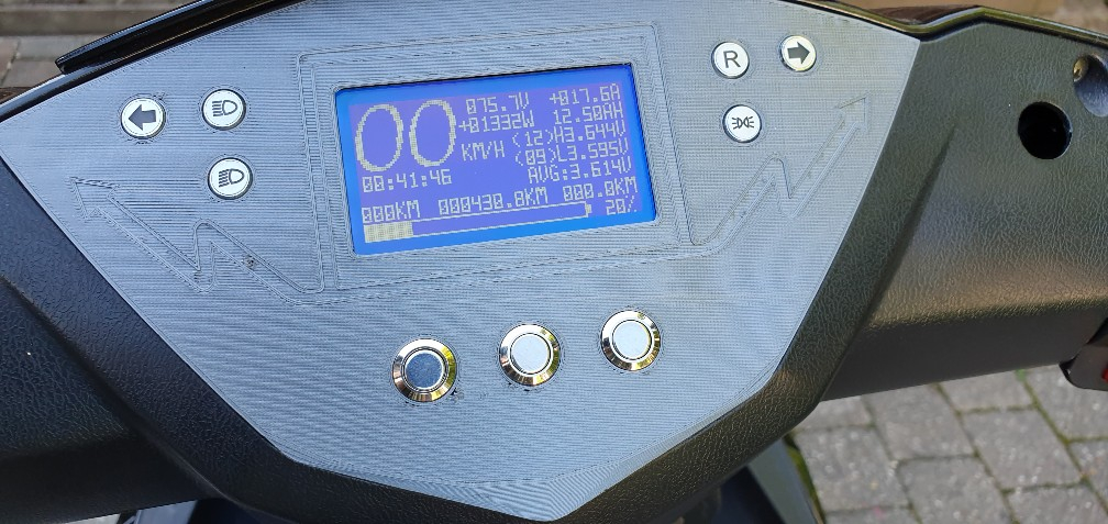 komplett umgebaut mit restreichweiten Berechnung, einzel, min, max und durchschnittliche zellenspannung, temperaturanzeige für mosfet, balancer, controller und 2x akku..