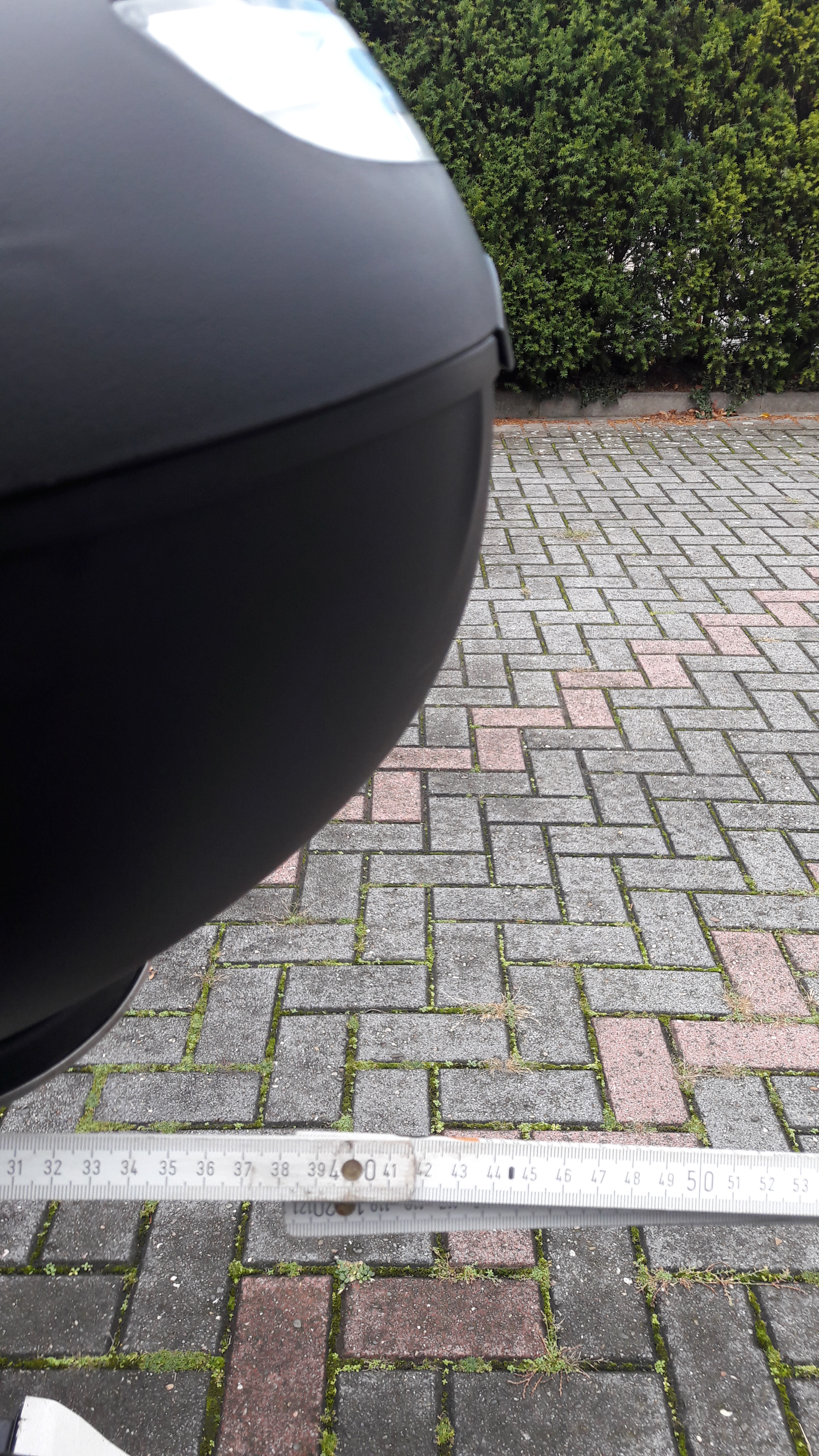 Anbei die Maße vom montierten Top Case. Abstand Sitzbank bis Ende Top Case 44cm. Da man das Top Case auch mit dem Schnellverschluss in null Komma nichts abnehmen kann, habe ich zusätzlich das Maß Top Case fotografiert. 32cm.