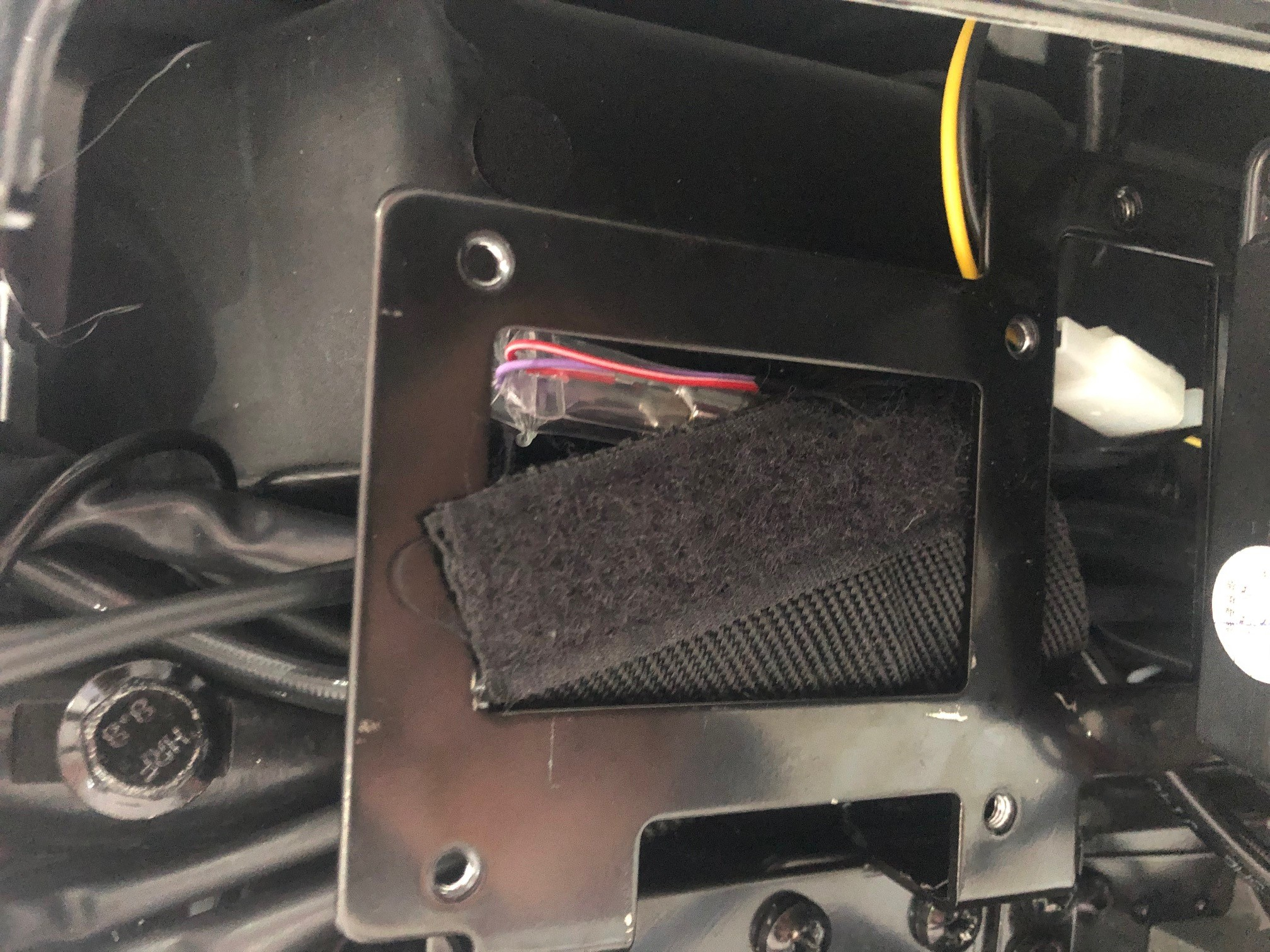 11) Kabelstrang wieder wie vorher verlegen und beide Stecker verbinden, Klettverschluss um den Kabelbaum wieder befestigen und Kabelbinder neueinrasten