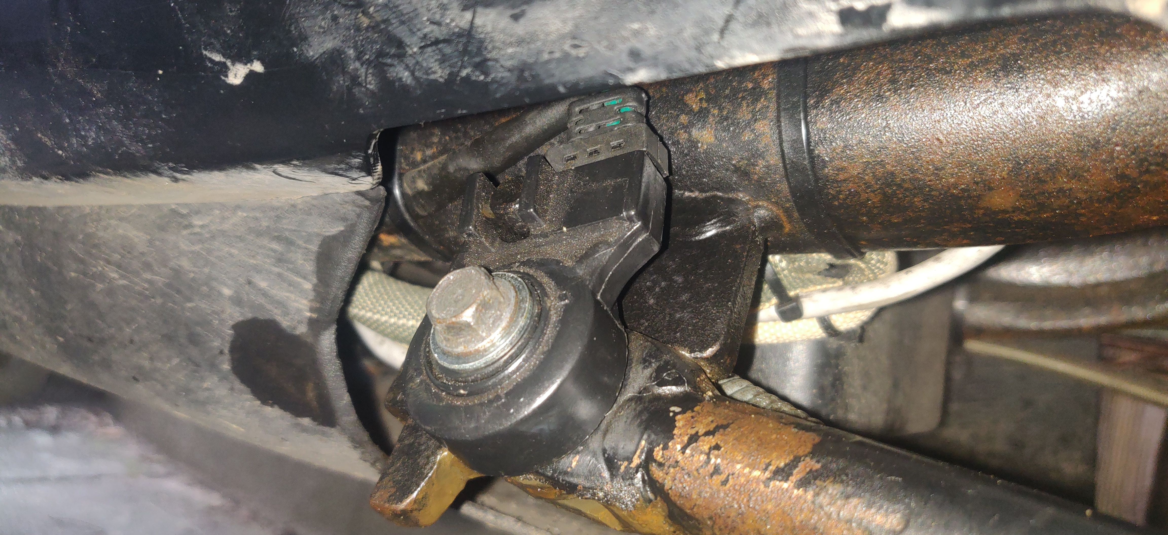 Habe nebenbei den Bolzen vom Ständer nachgezogen, alles gefettet und wieder zusammen gebaut. Beim nächsten Basteln muss ich mal sehen warum das 3 Kabel sind und wohin die gehen.
