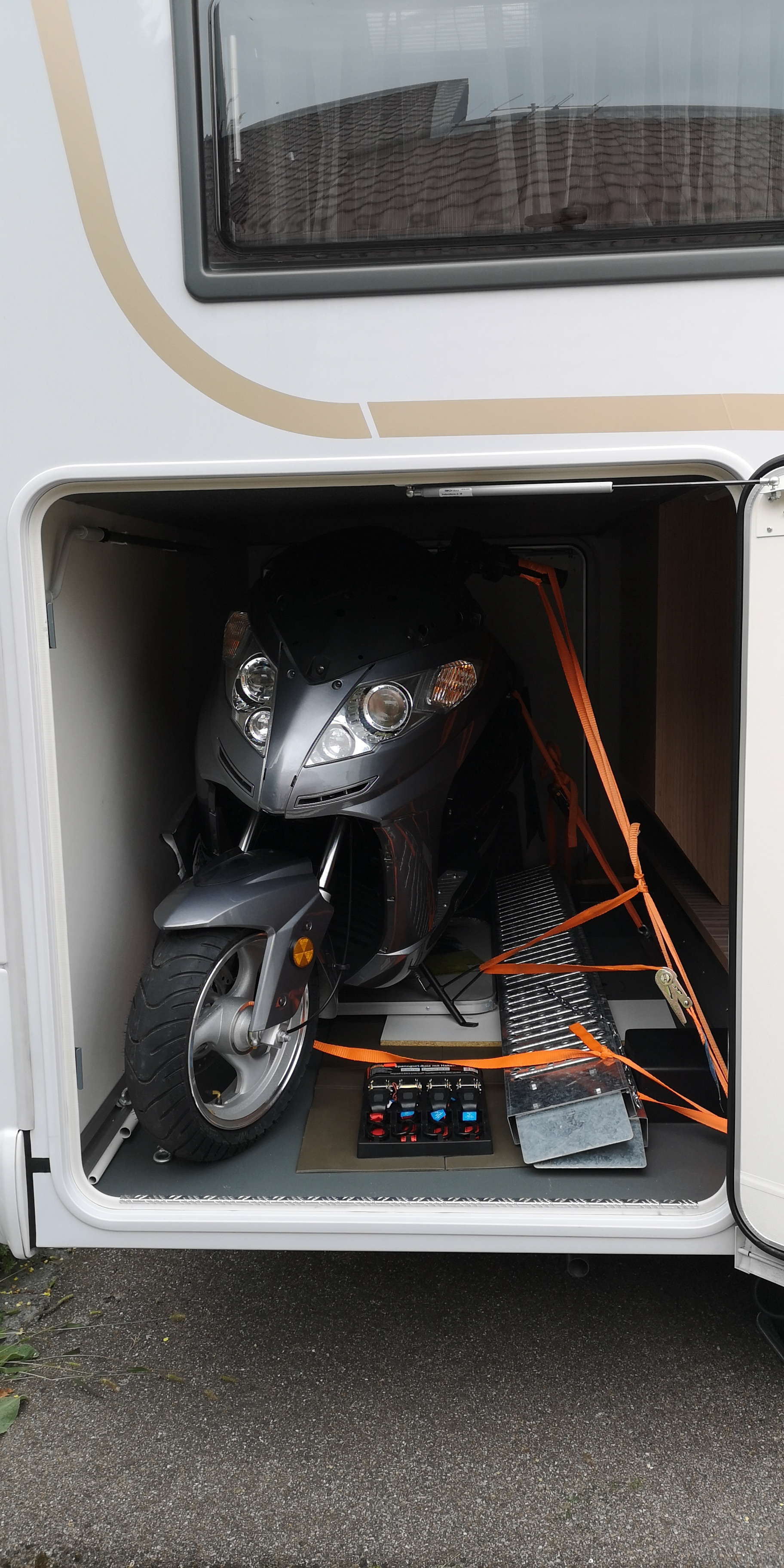 Die Heckgarage ist "groß" naja die Spiegel und die Scheibe muss ich demontieren...