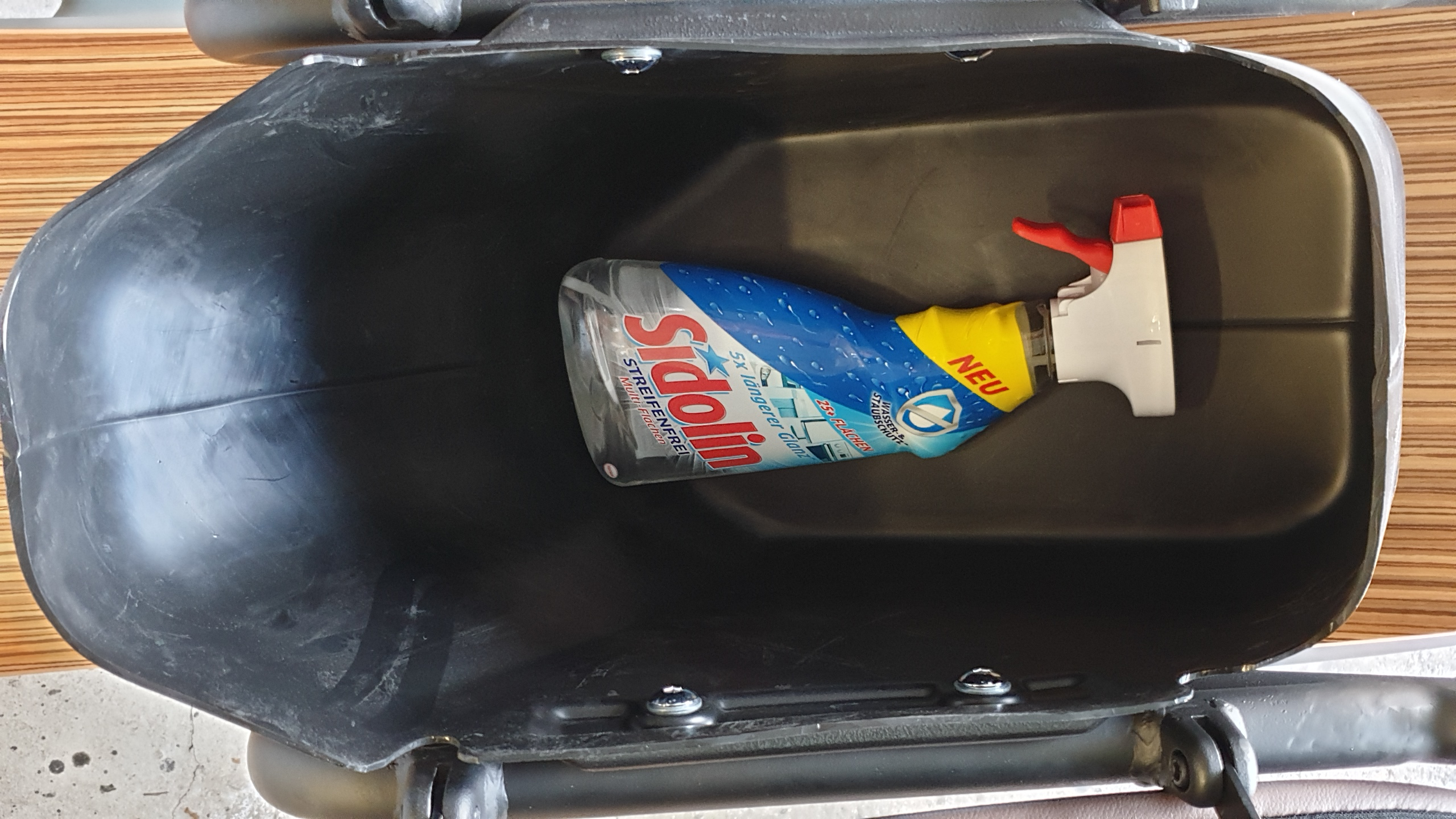 Der Stauraum ist riesig, da geht jeweils eine halbe Kiste Bier rein, der Jethelm auf dem Bild ist Größe XL, da würden 3 von rein passen.